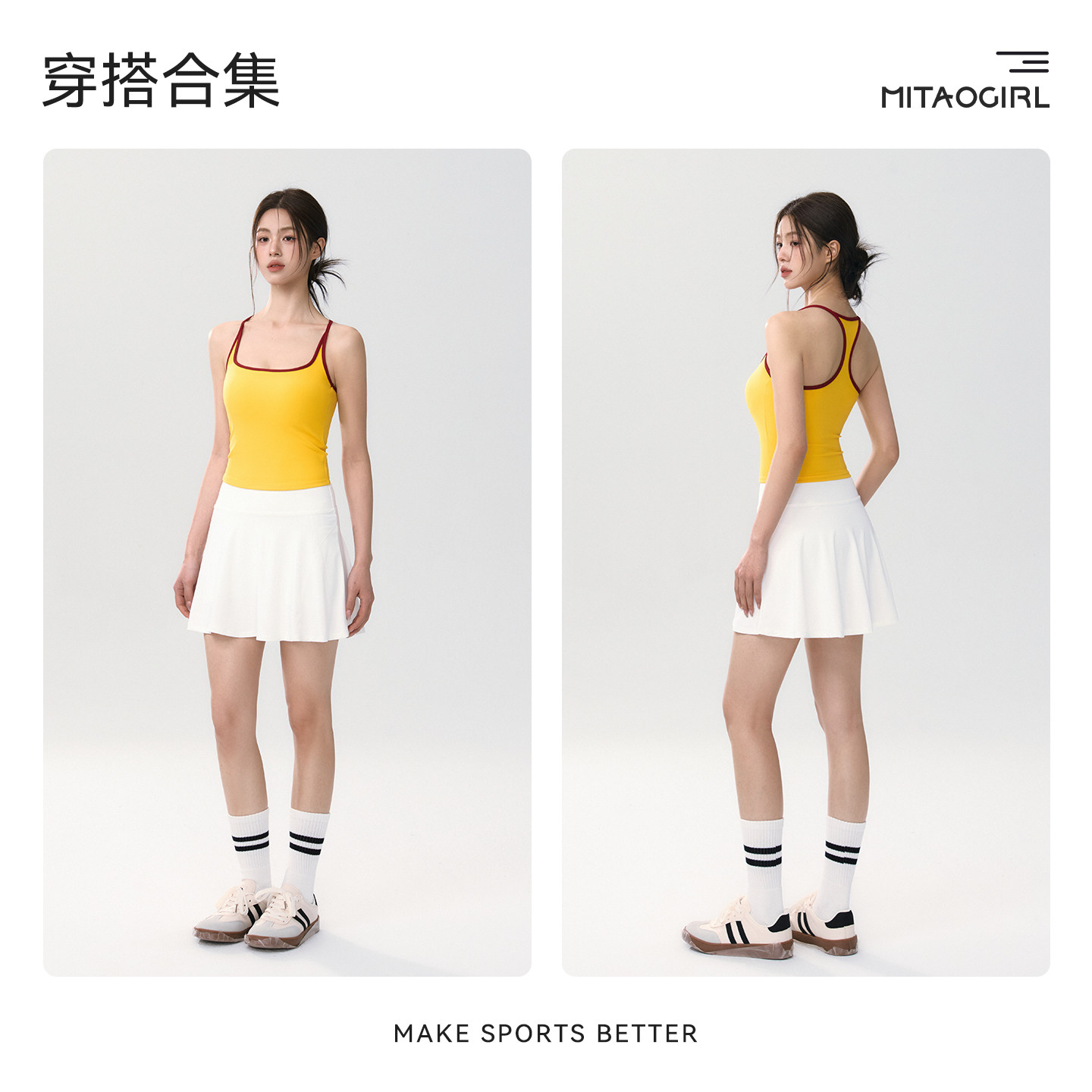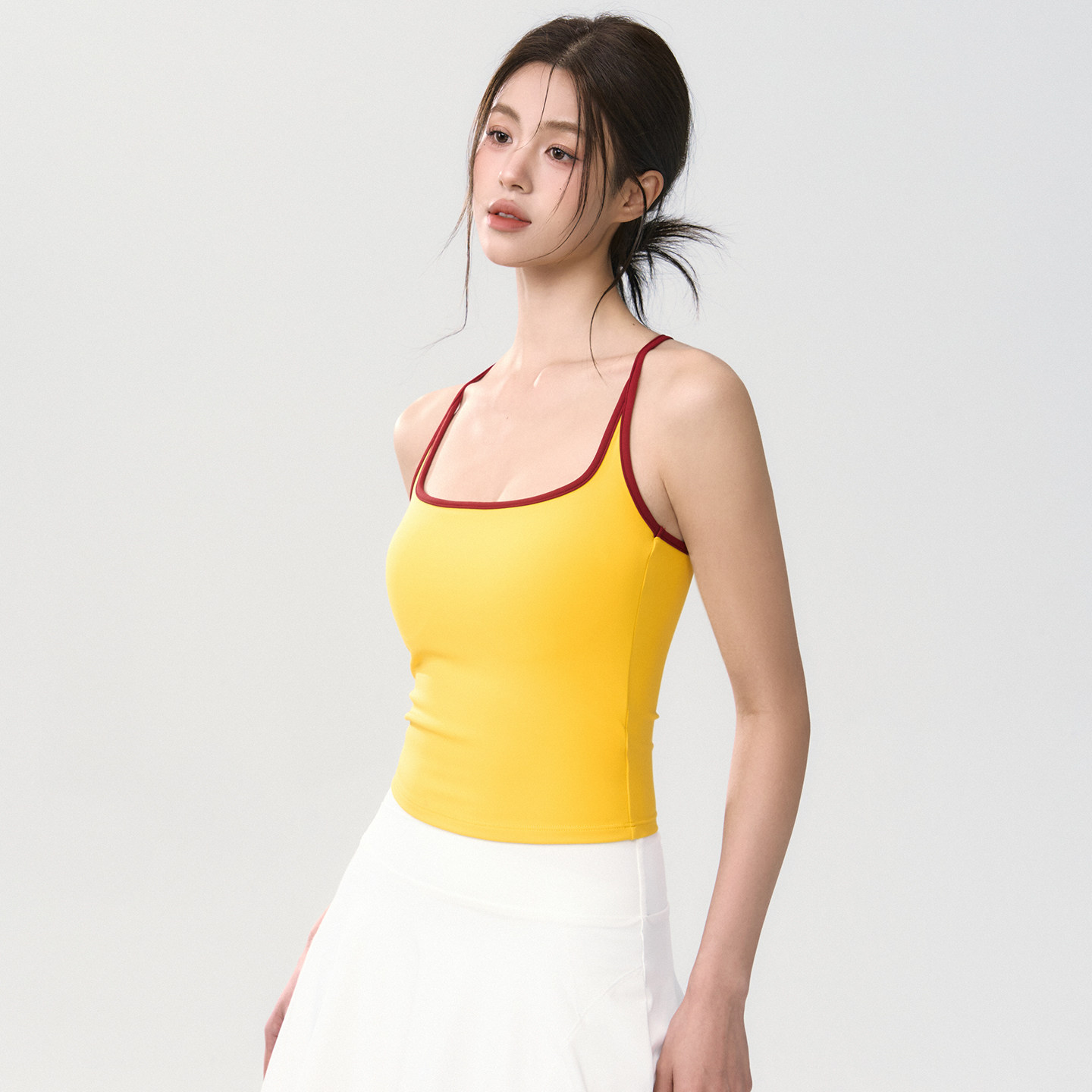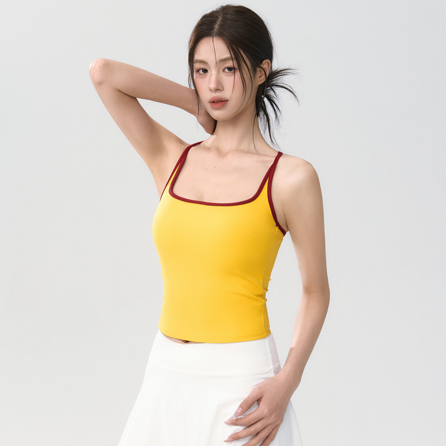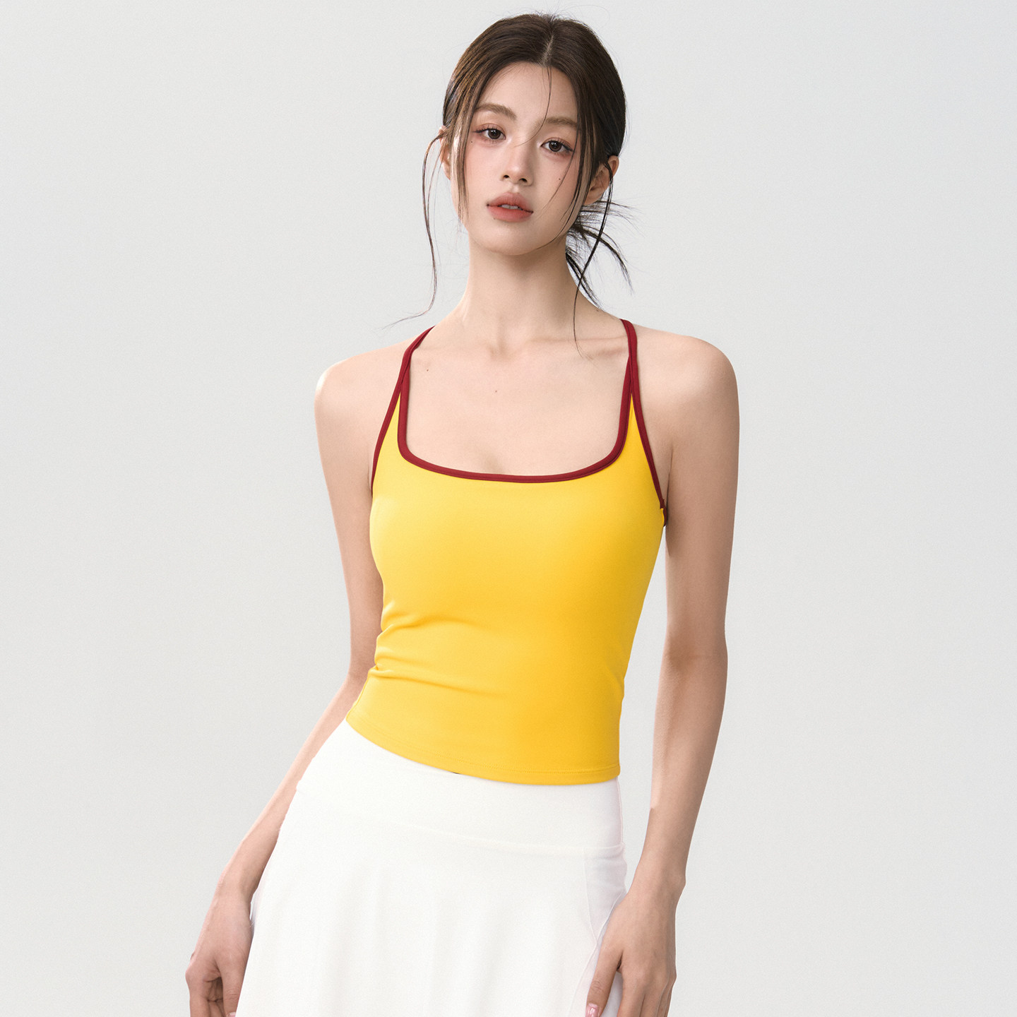 Mitaogirl撞色吊带瑜伽背心女工字美背运动内衣固定杯健身文胸春