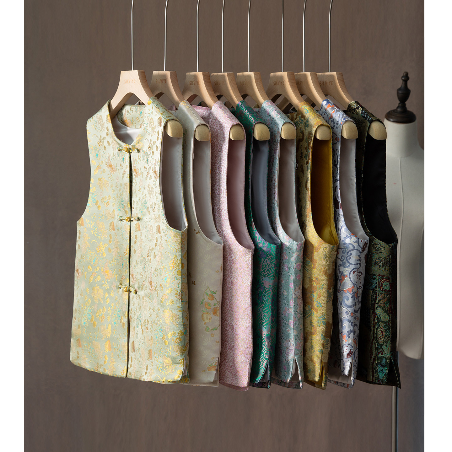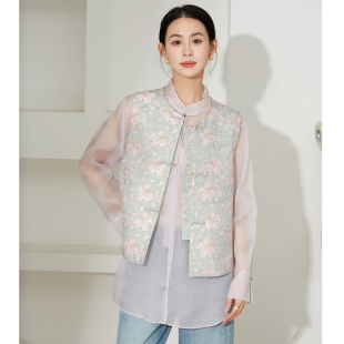 SILVIYE溯也 背心女 100%桑蚕丝国风宋锦提花非遗真丝马甲外套开衫