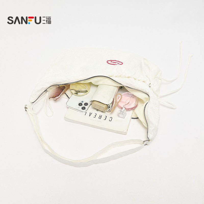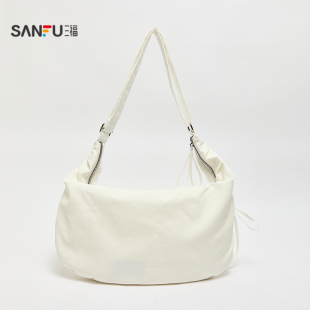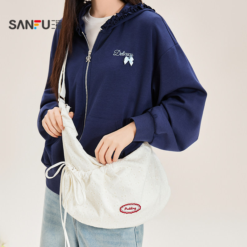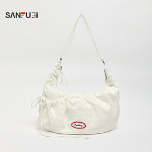 三福挎包春季 少女甜美风抽绳饺子包休闲布软包女包519794 法式