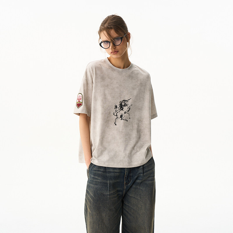 EXITMODE 蜡印独角兽印花T恤 26SS