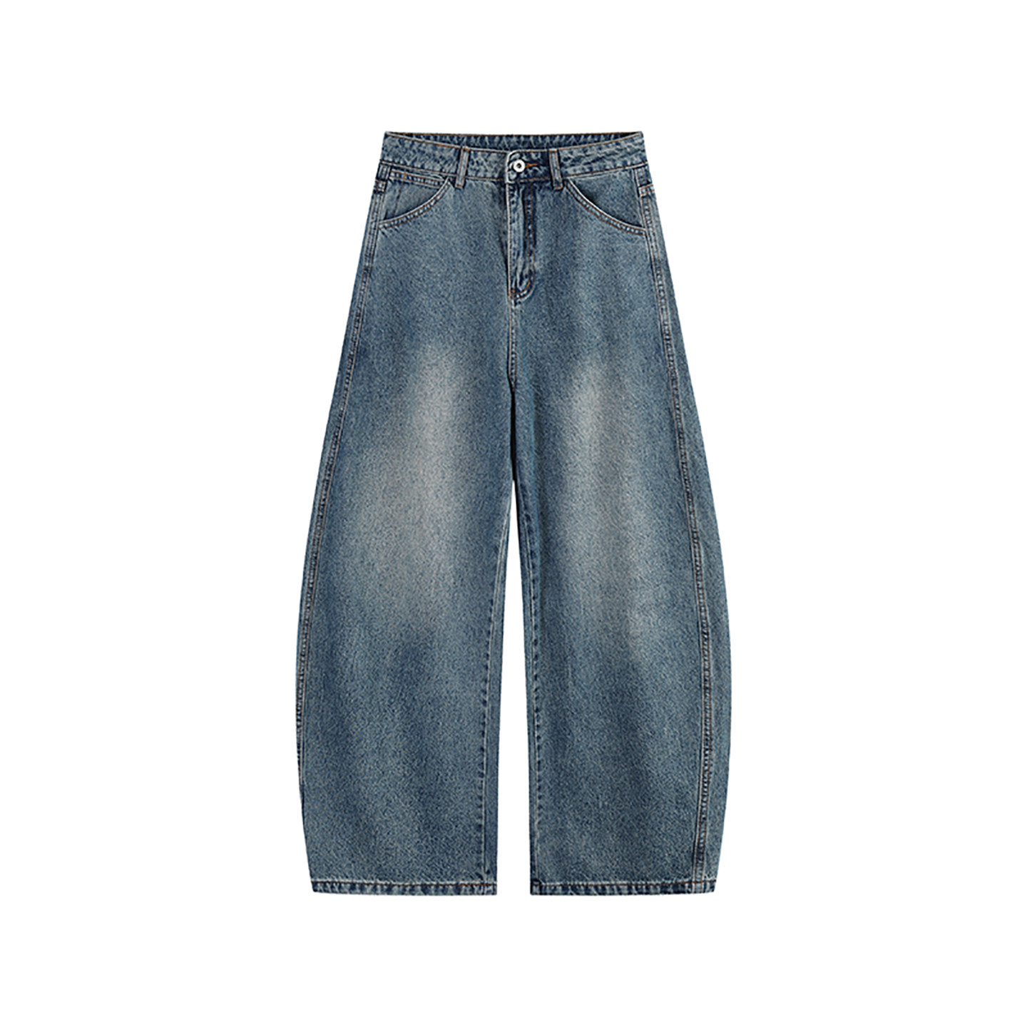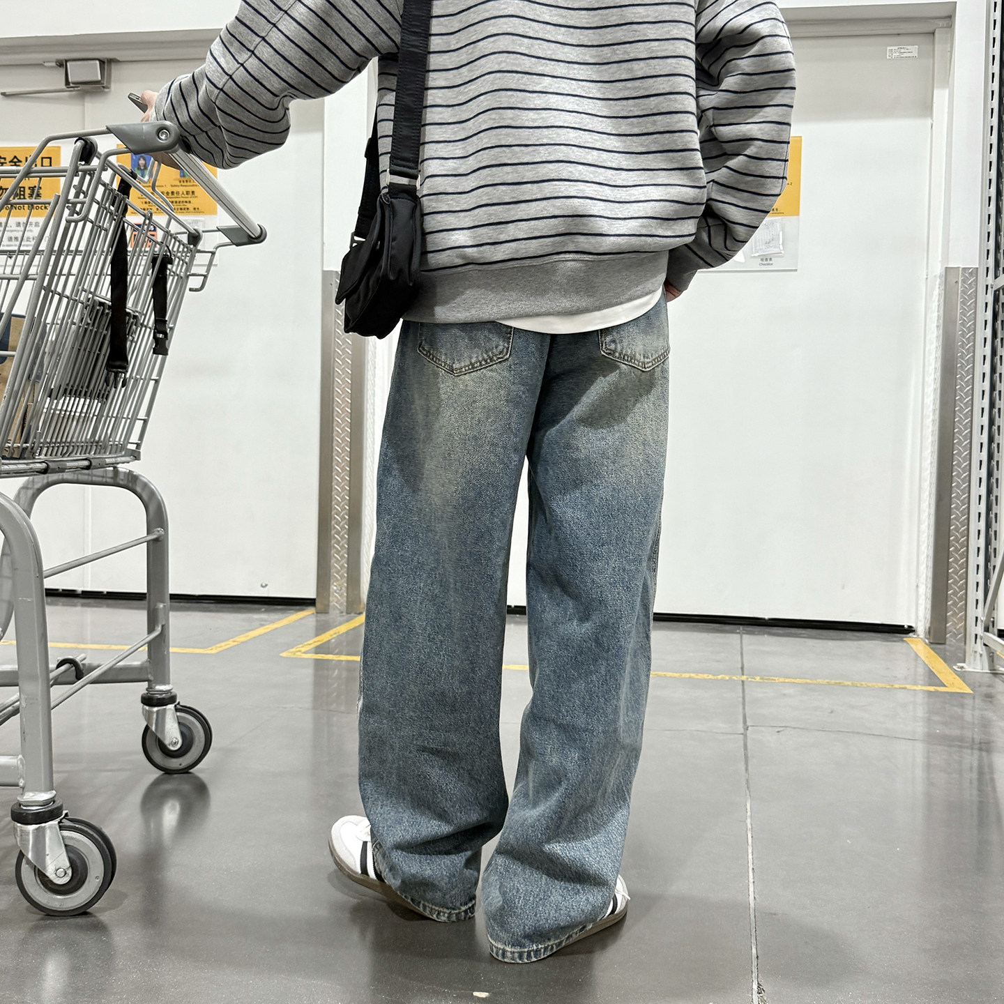 宽松阔腿休闲裤 秋季 男生2025新款 蓝色复古水洗做旧日系弯刀牛仔裤