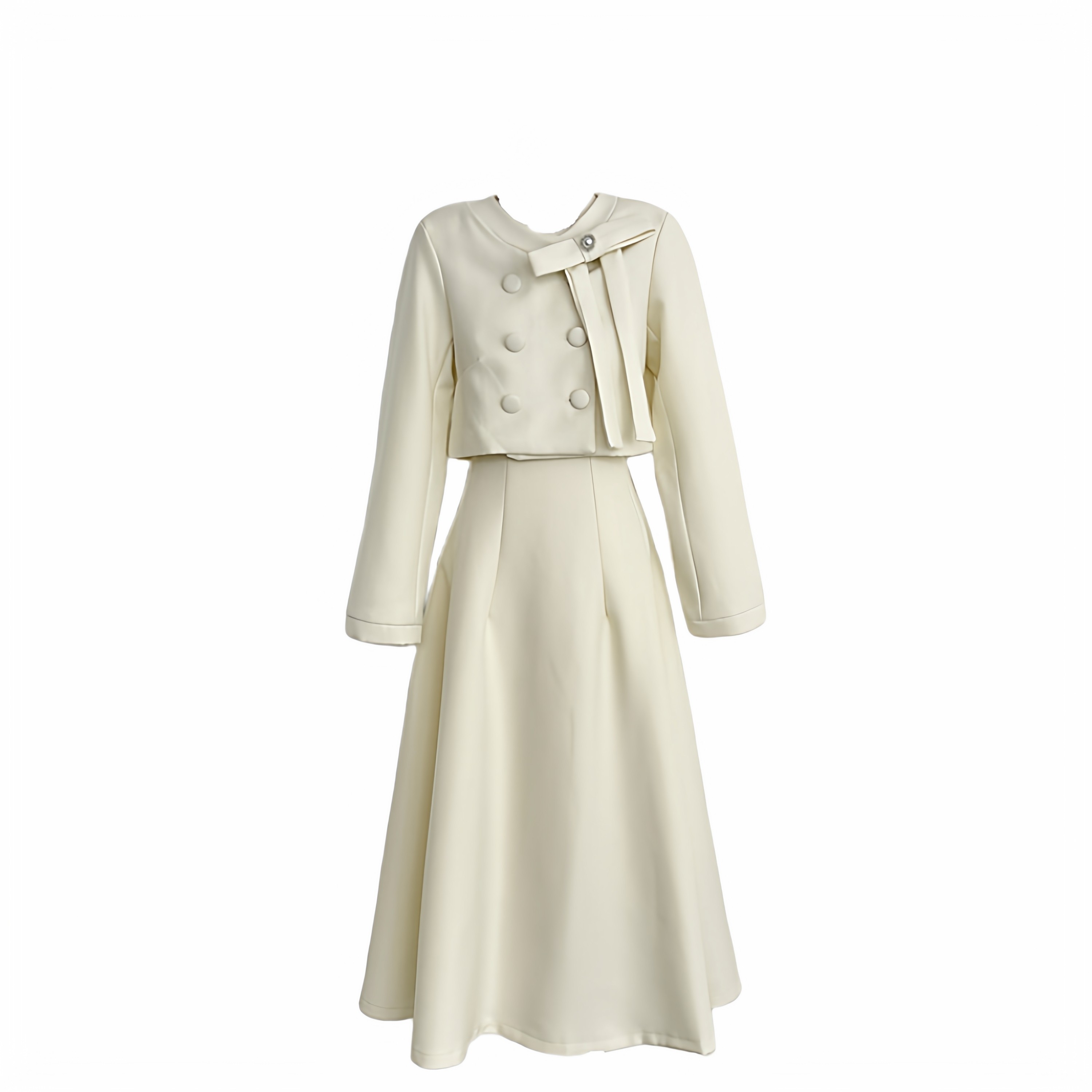 套装 LIULIUGE 复古珍珠蝴蝶结A字廓形长半裙时尚 法式 南洋千金秋季