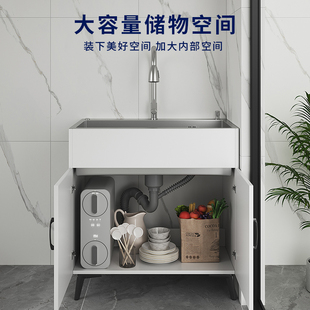 厨房不锈钢洗菜盆带一体柜阳台水槽柜出租房单槽洗碗池家用小橱柜