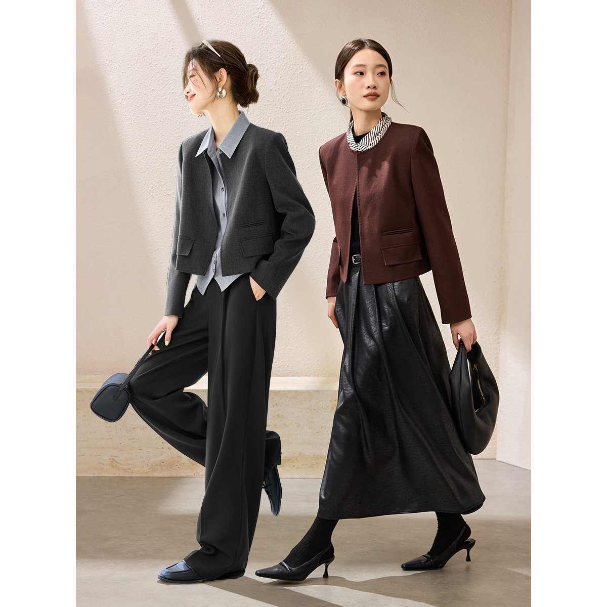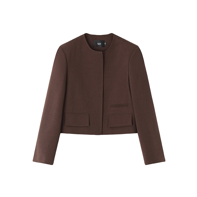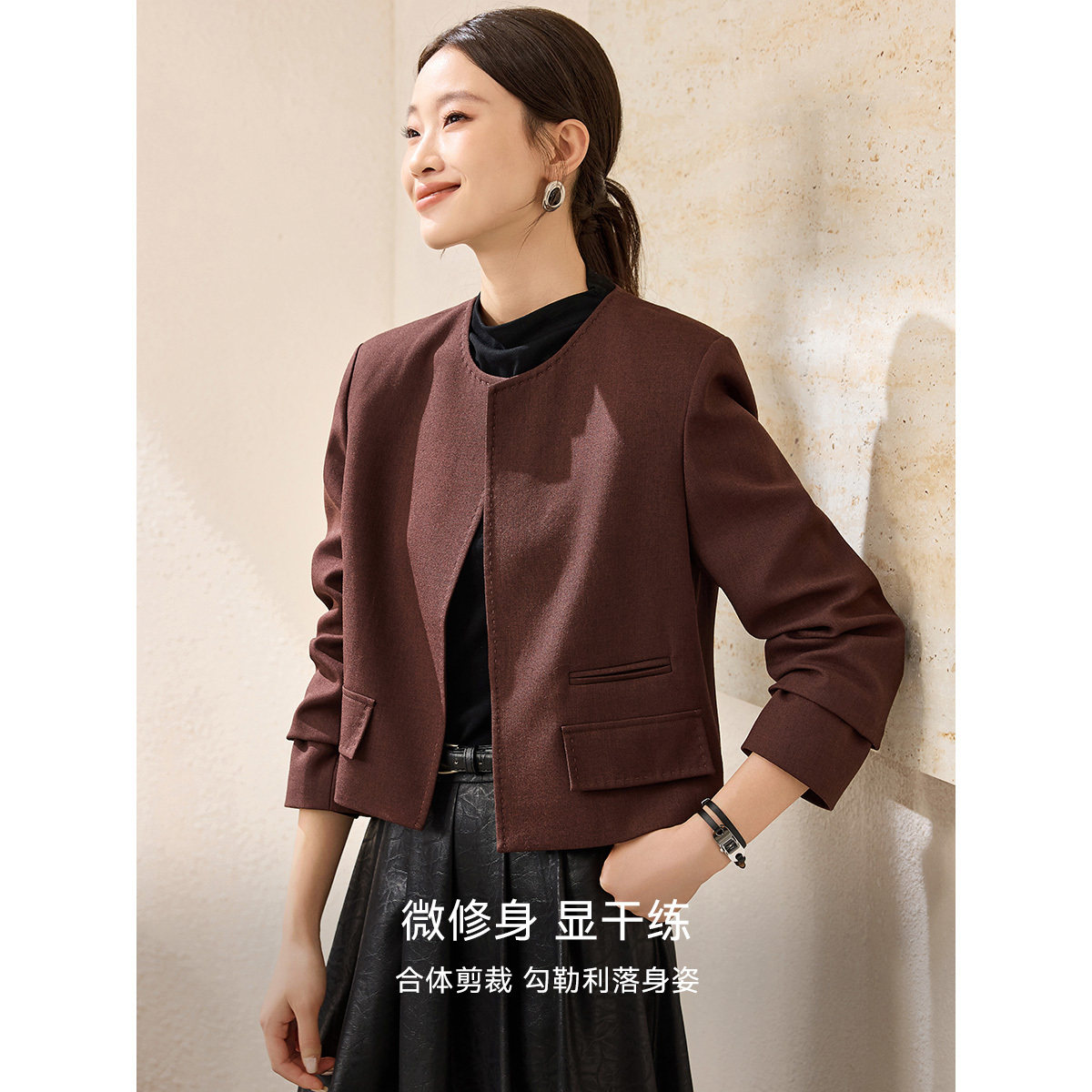 新款 外套2026春季 独特漂亮小西服 女士西装 沫晗依美圆领截短式