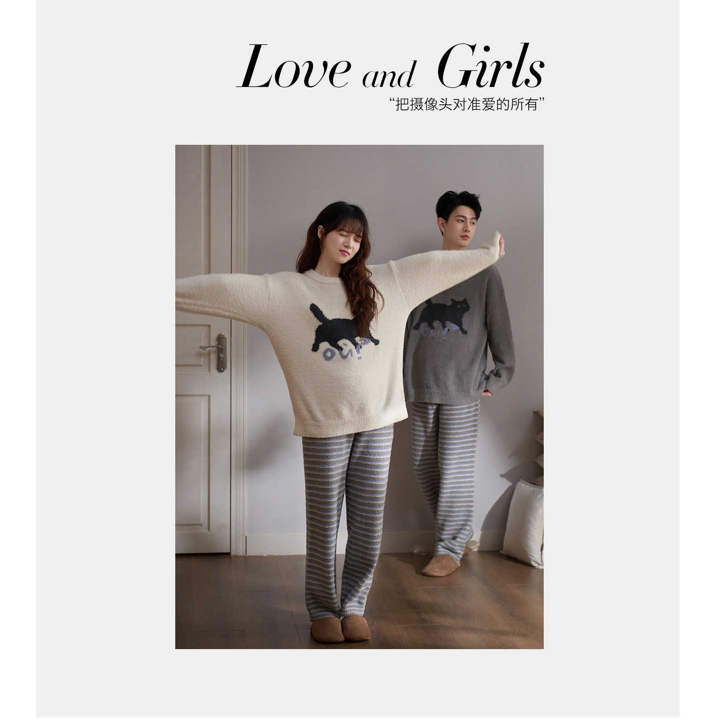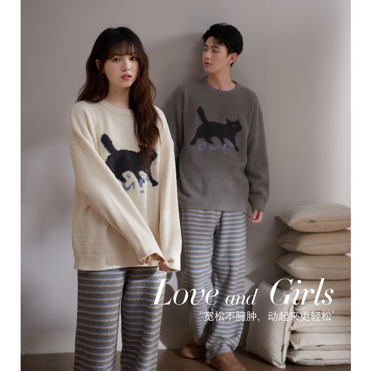 秋冬天家居服 加厚加绒可外穿男士 思莉太太半边绒情侣睡衣冬季 女款