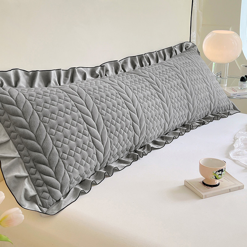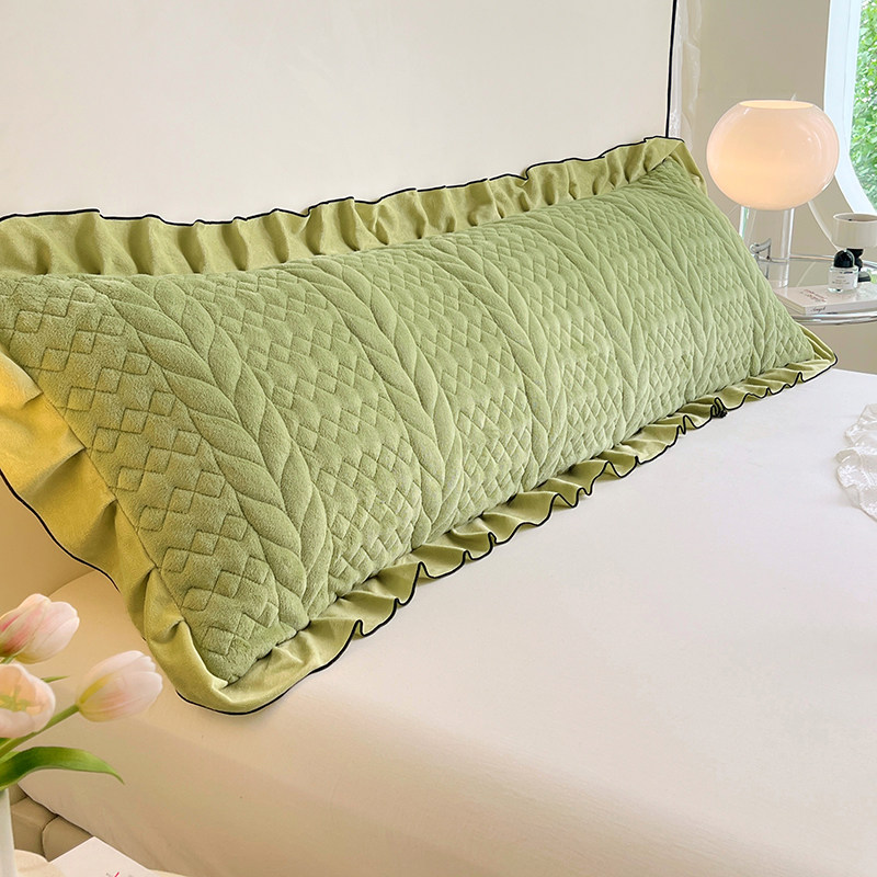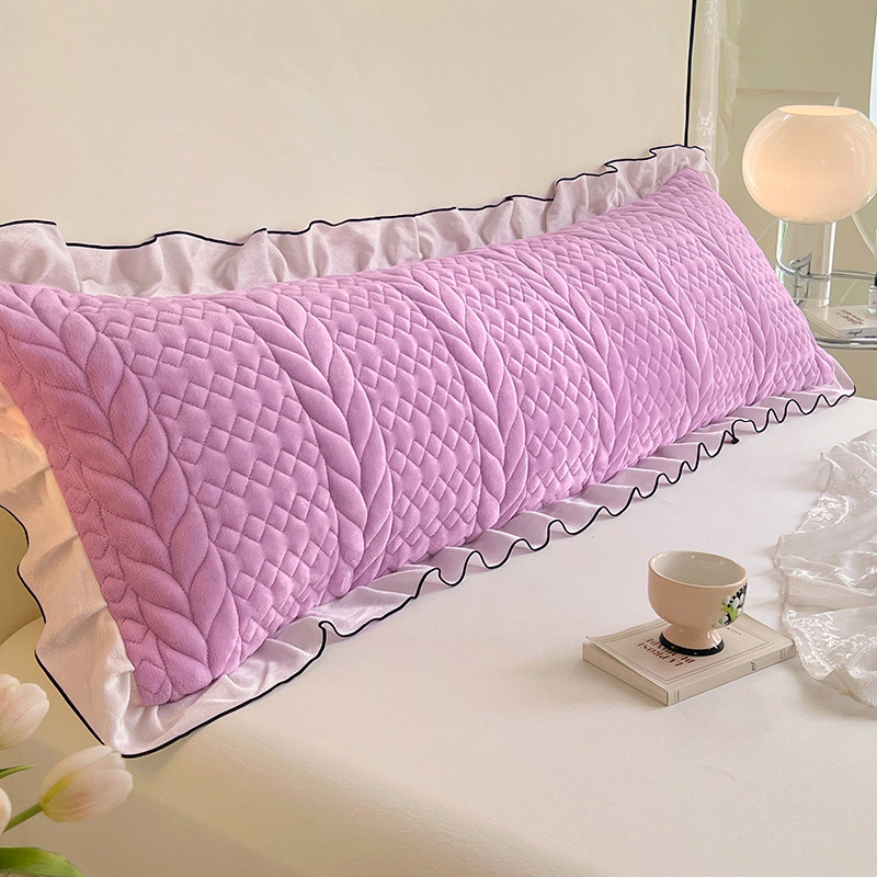 纯色牛奶绒夹棉花边双人长枕套秋冬加厚1.5m枕芯套1.8m枕头罩单只