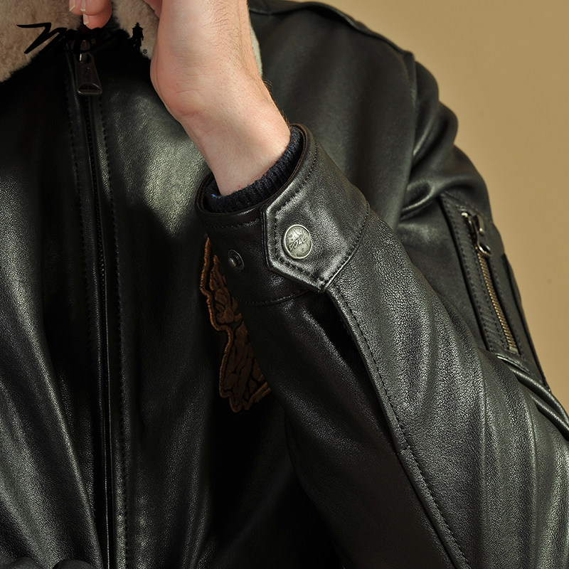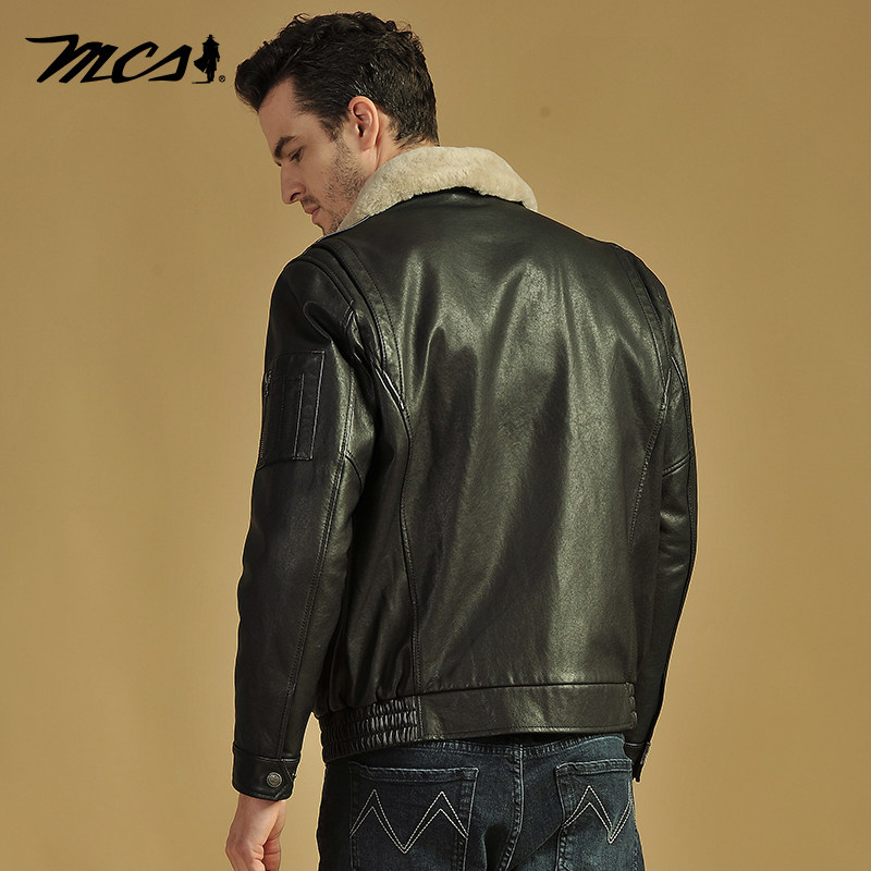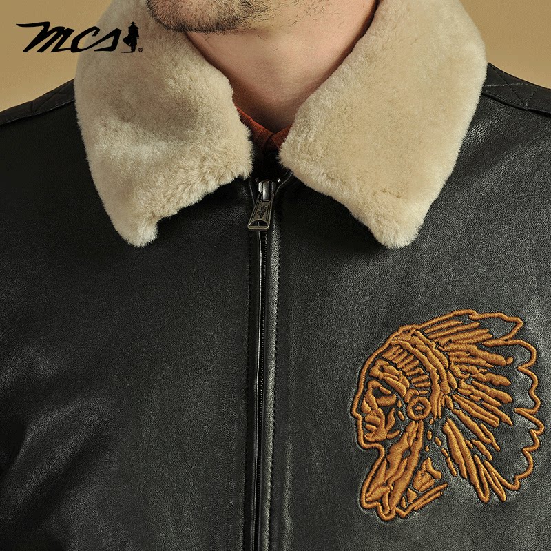 绵羊皮革真皮皮衣 可脱卸翻毛领绣花短款 MCS男装 源自万宝路秋冬款