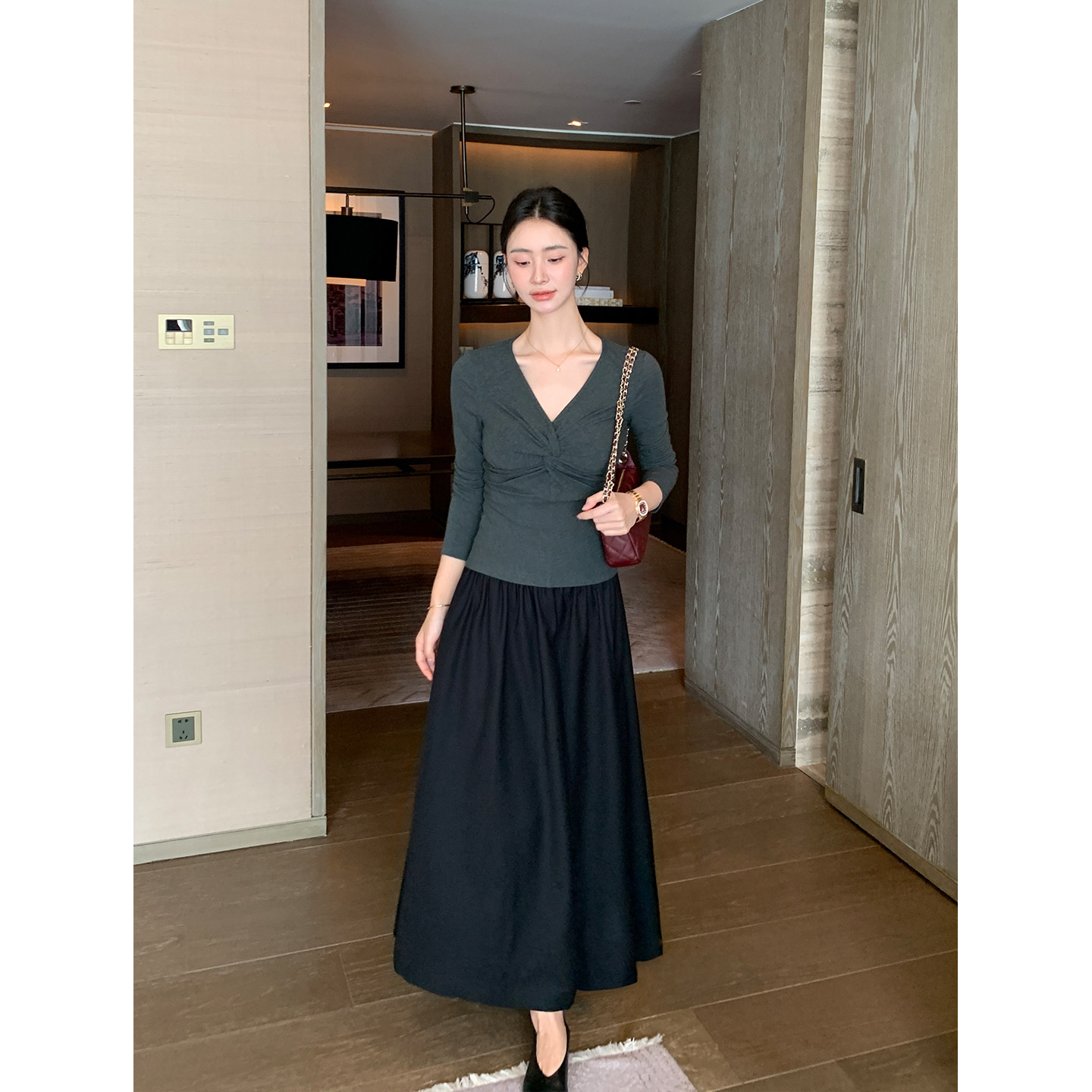 高腰半身裙女气质宽松大裙摆伞裙垂感长裙 现货7折 Maven Lin