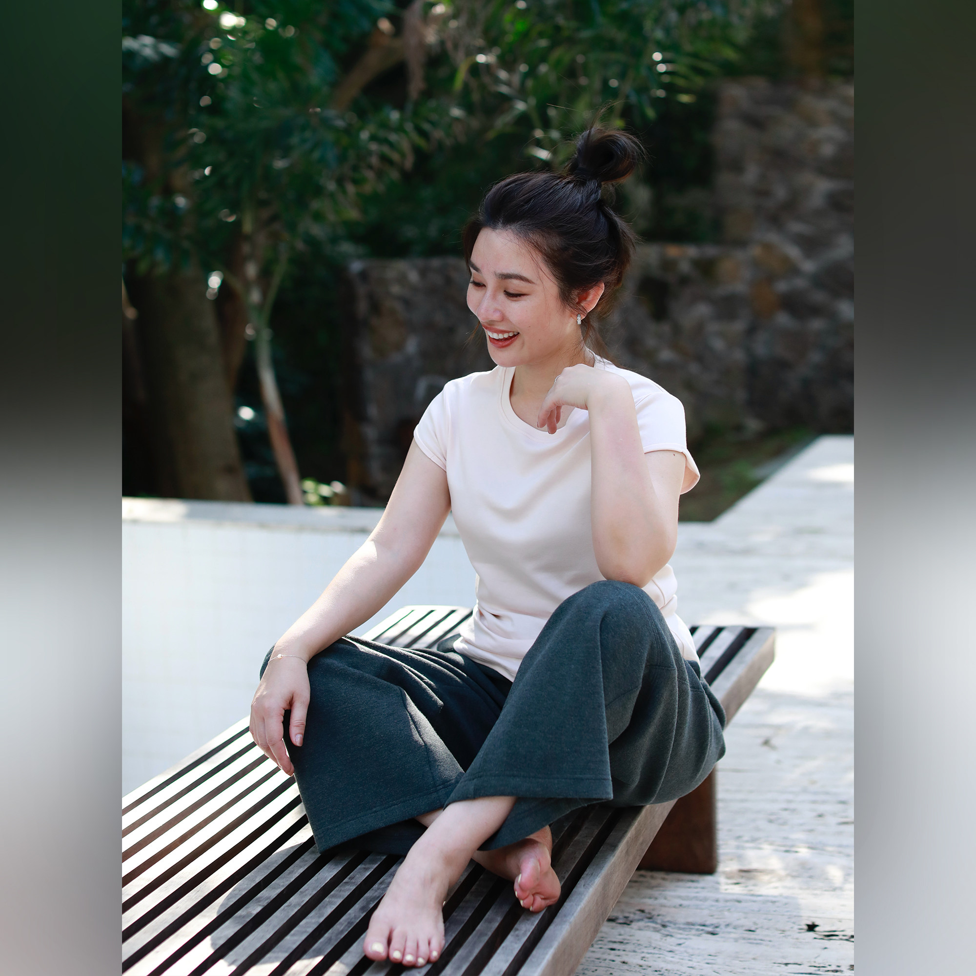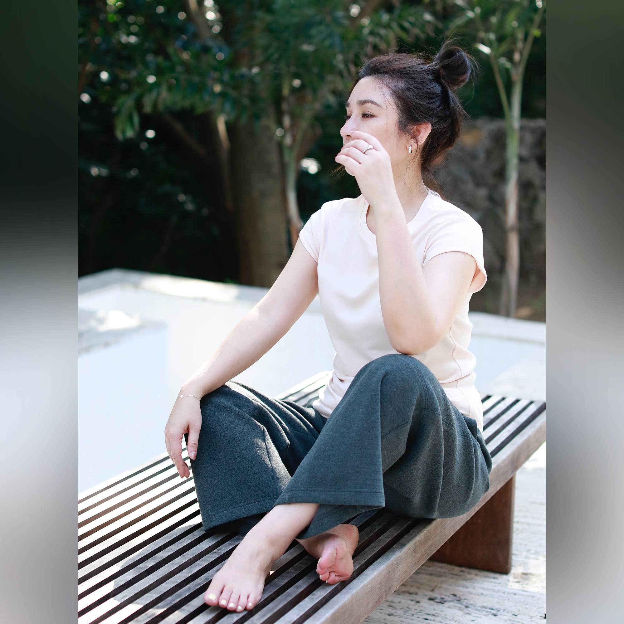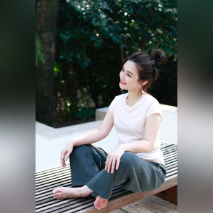 高密棉基础圆领卷边小飞袖 淡山茱萸粉 气质简约T恤 不tui不换