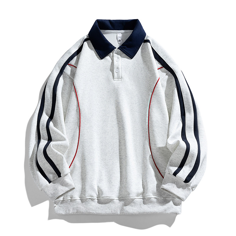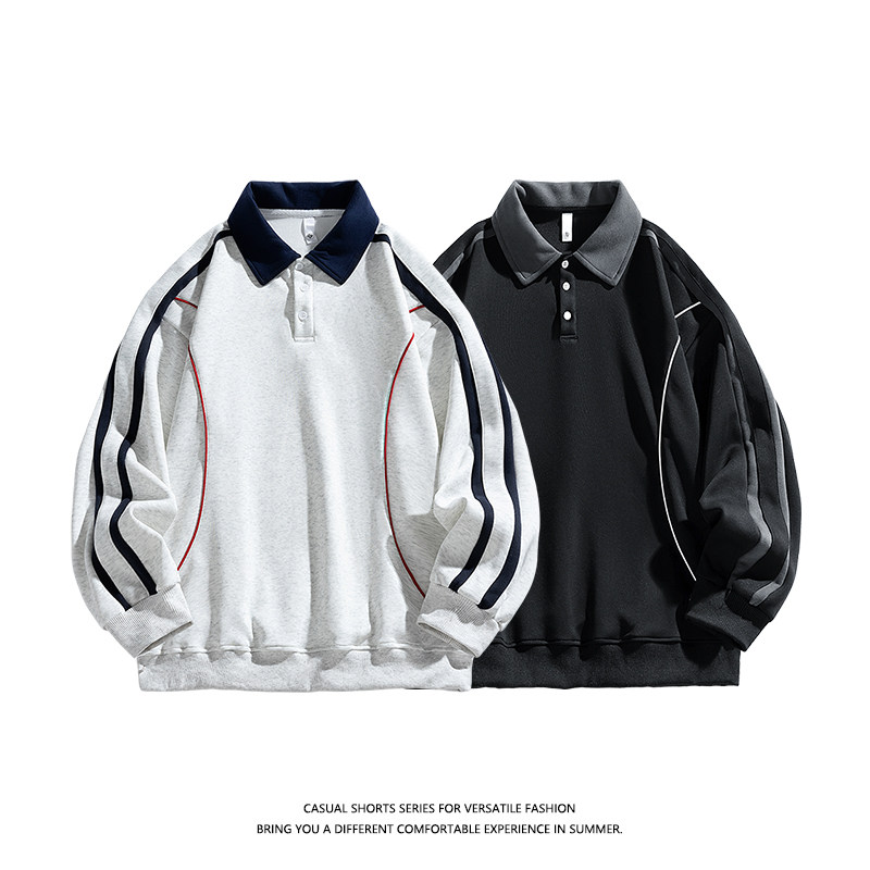 高街翻领情侣上衣YX POLO衫 Q6870 长袖 当潮马撞色拼接条纹卫衣秋季