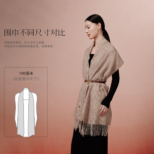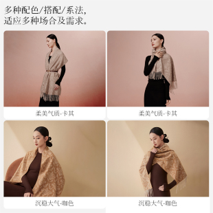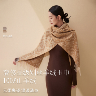 新款 万事利冬季 100%山羊绒围巾送妈妈保暖披肩岁岁生花 生日礼物