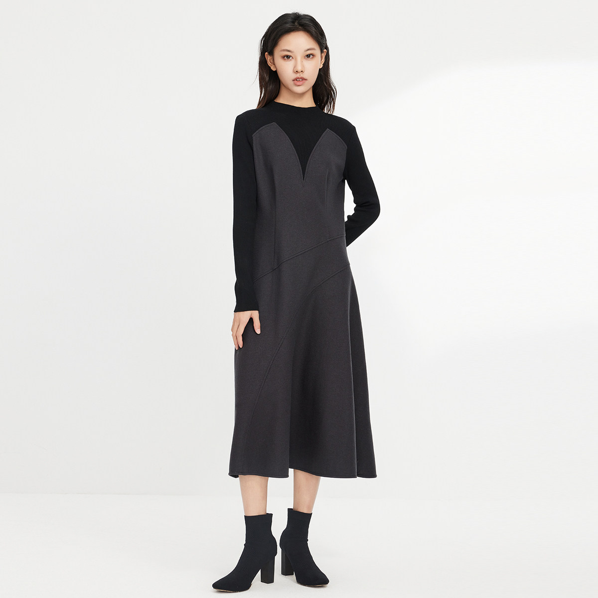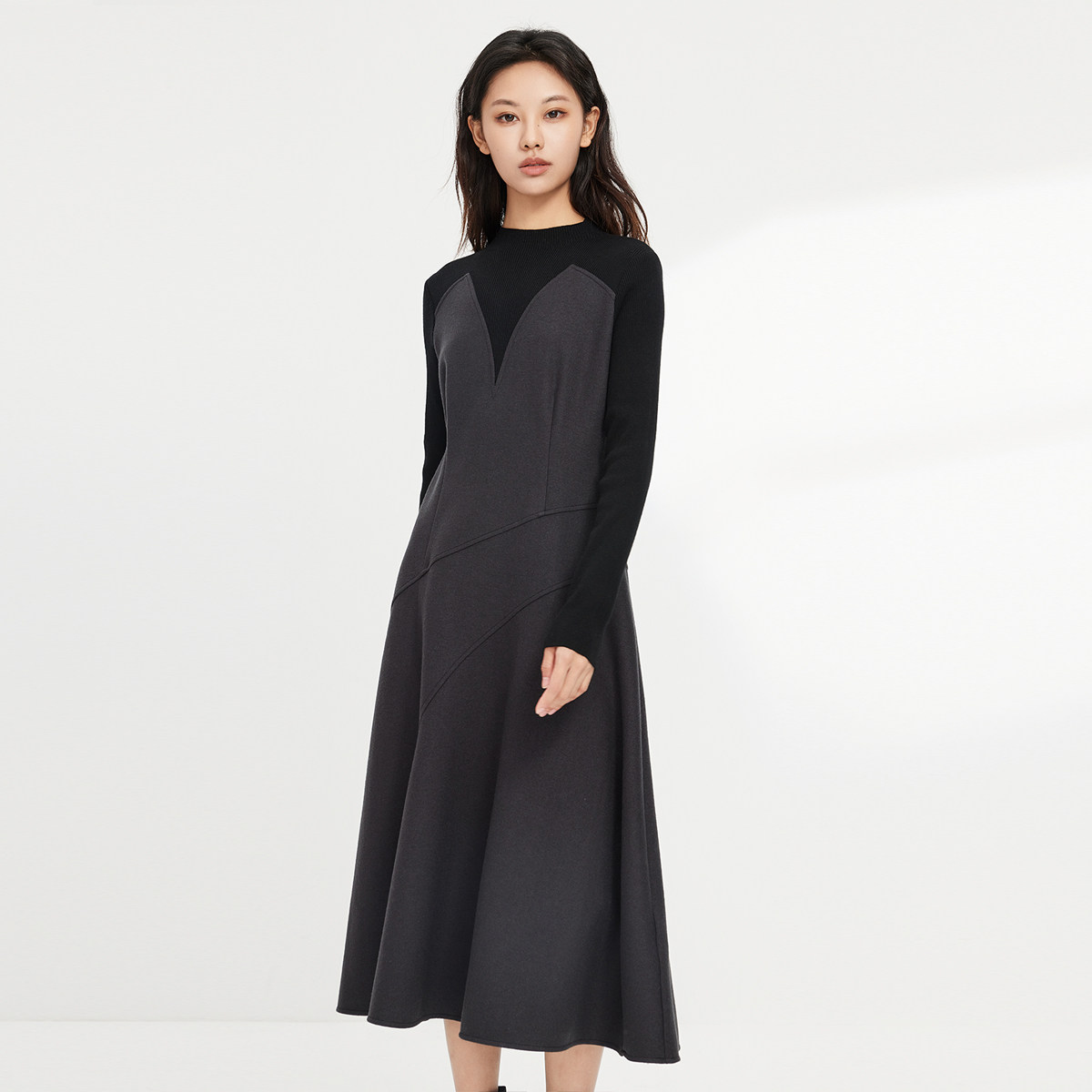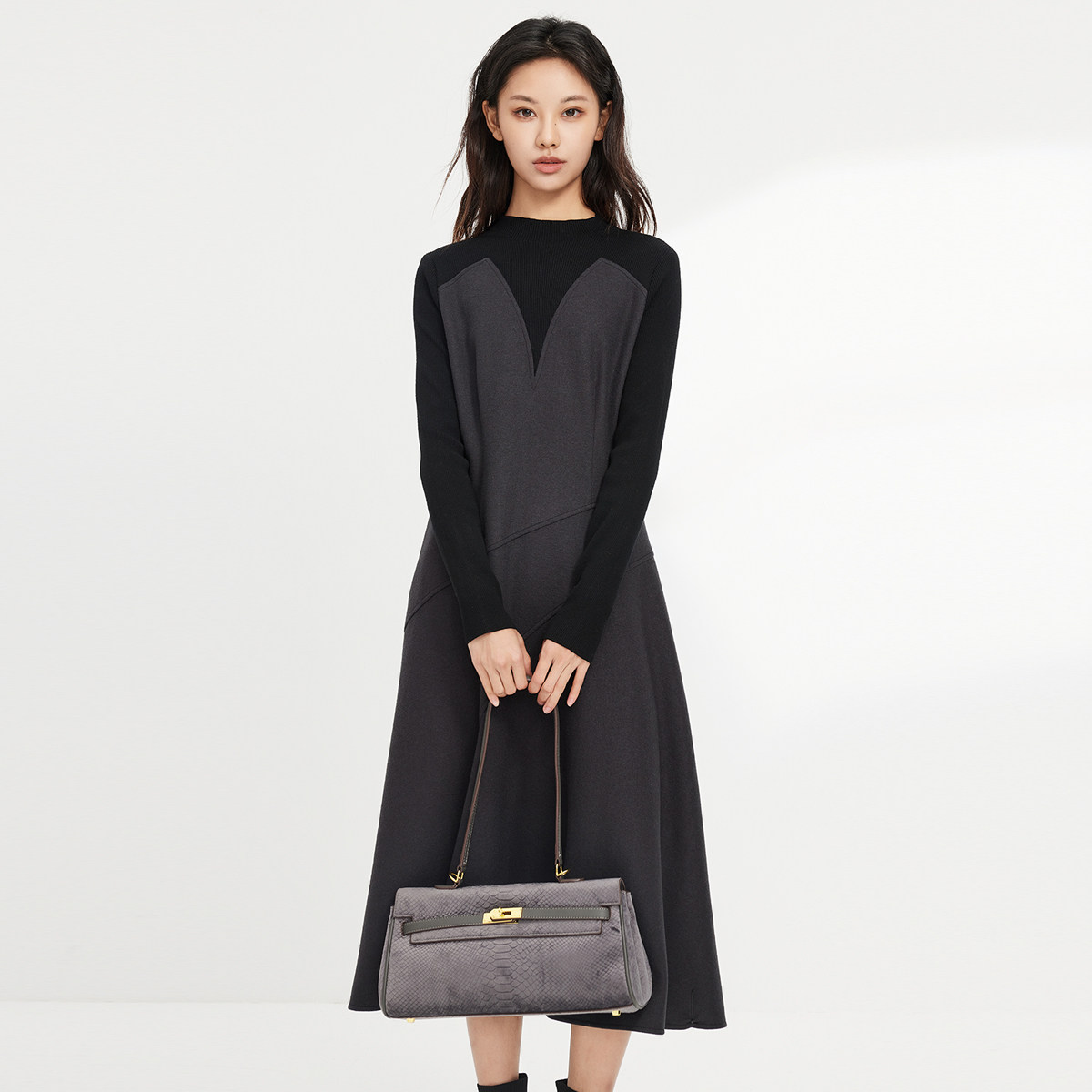 中长款 气质显瘦设计感长袖 裙子 新款 谷邦针织拼接连衣裙女2025冬季