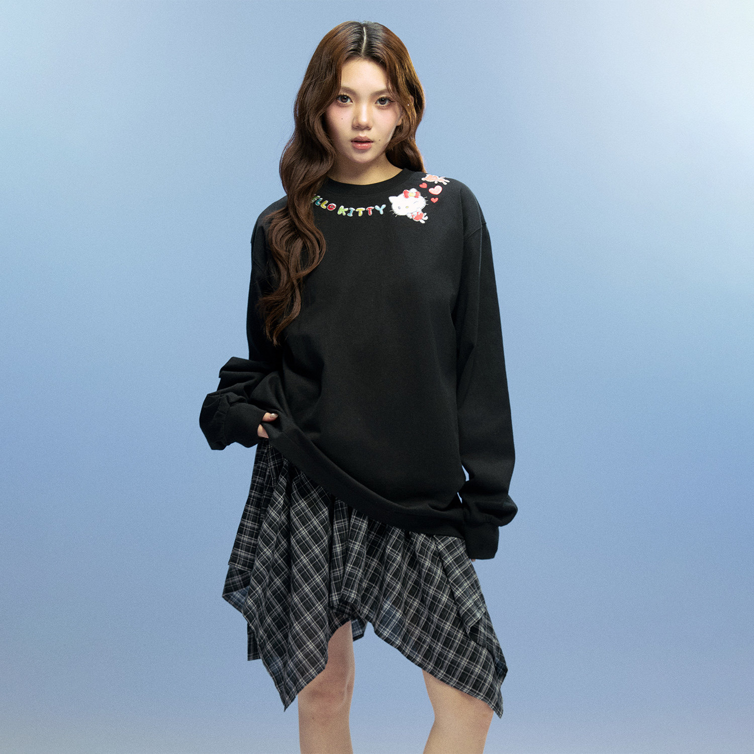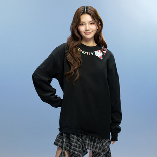 HELLO T恤秋季 KITTY官方联名 涂鸦刺绣长袖 女通勤高级 WHOOSIS