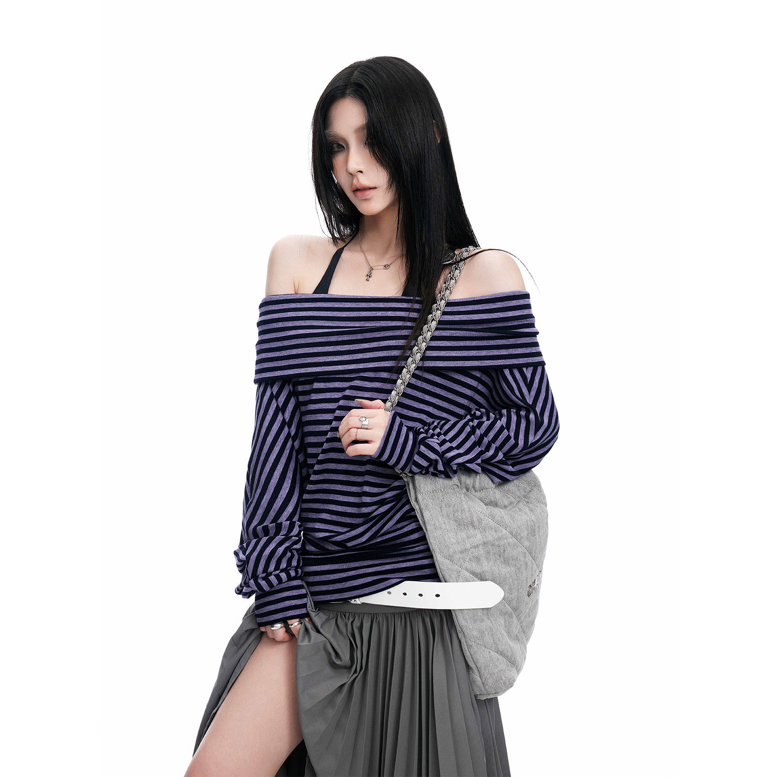 打底衫 春秋韩版 不规则不对称套头毛衣蝙蝠衫 针织衫 女宽松洋气 女装