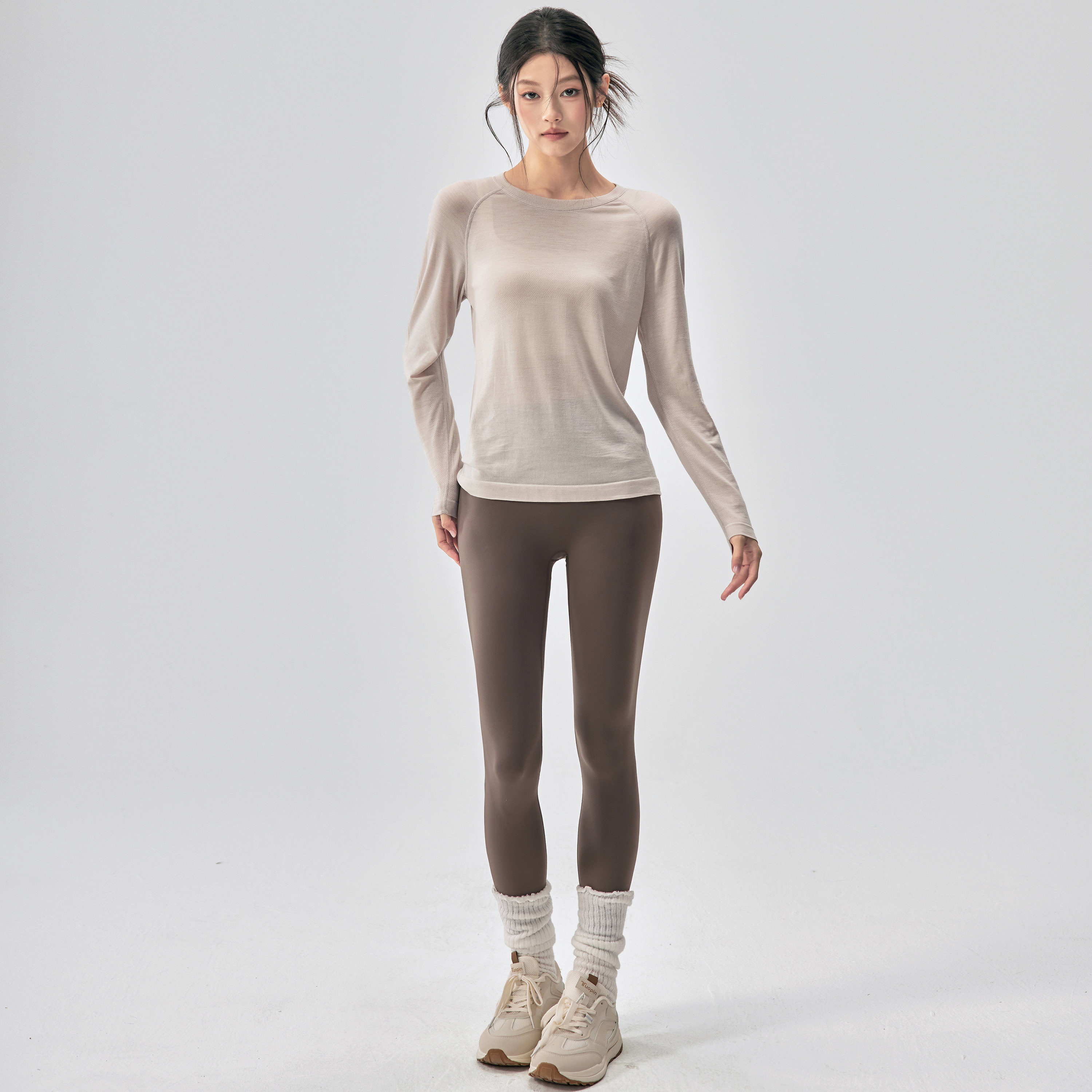 灰壳美利奴羊毛速干衣女户外登山排汗长袖 美丽诺徒步秋冬保暖t恤