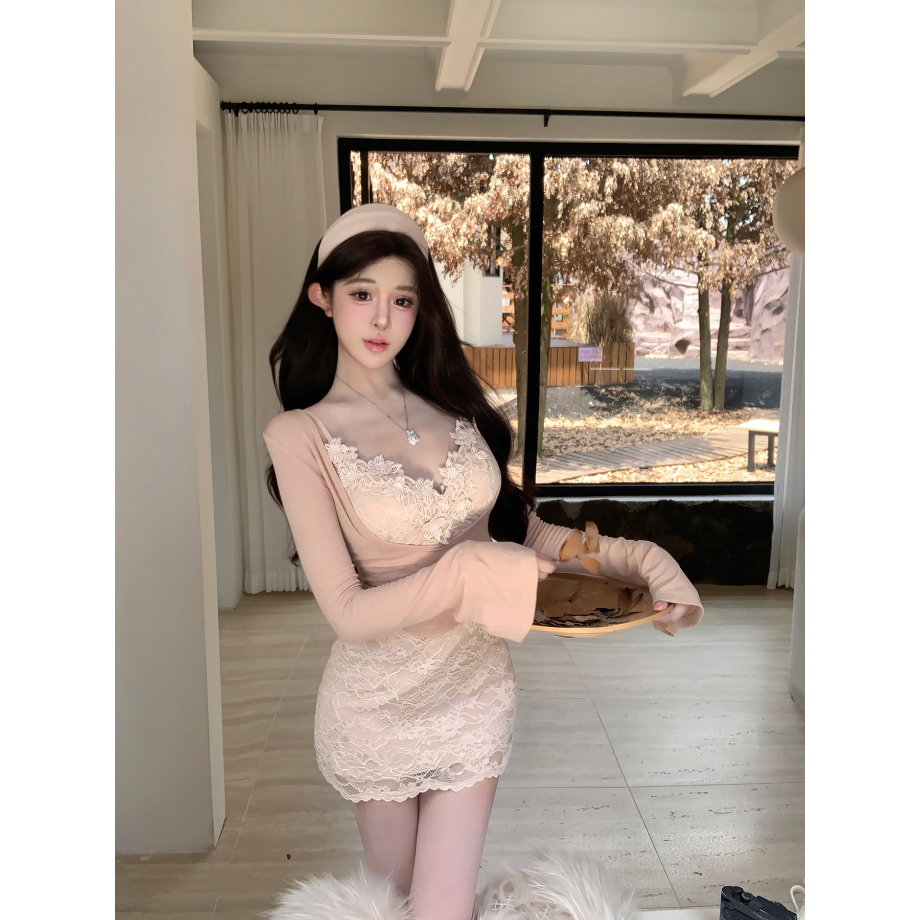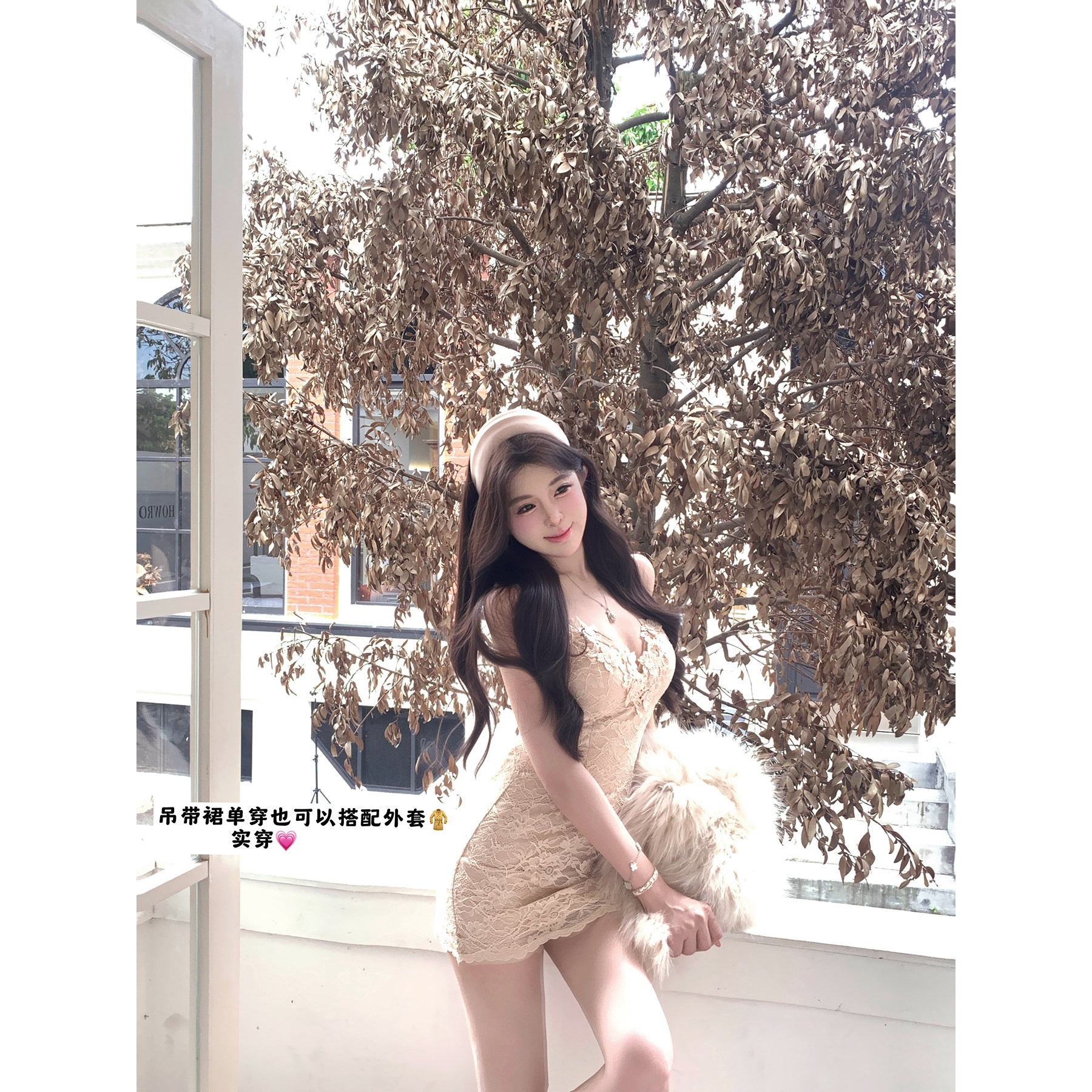 法式 新款 包臀裙性感纯欲裙子 蕾丝吊带连衣裙女2025秋季 项天鹅er