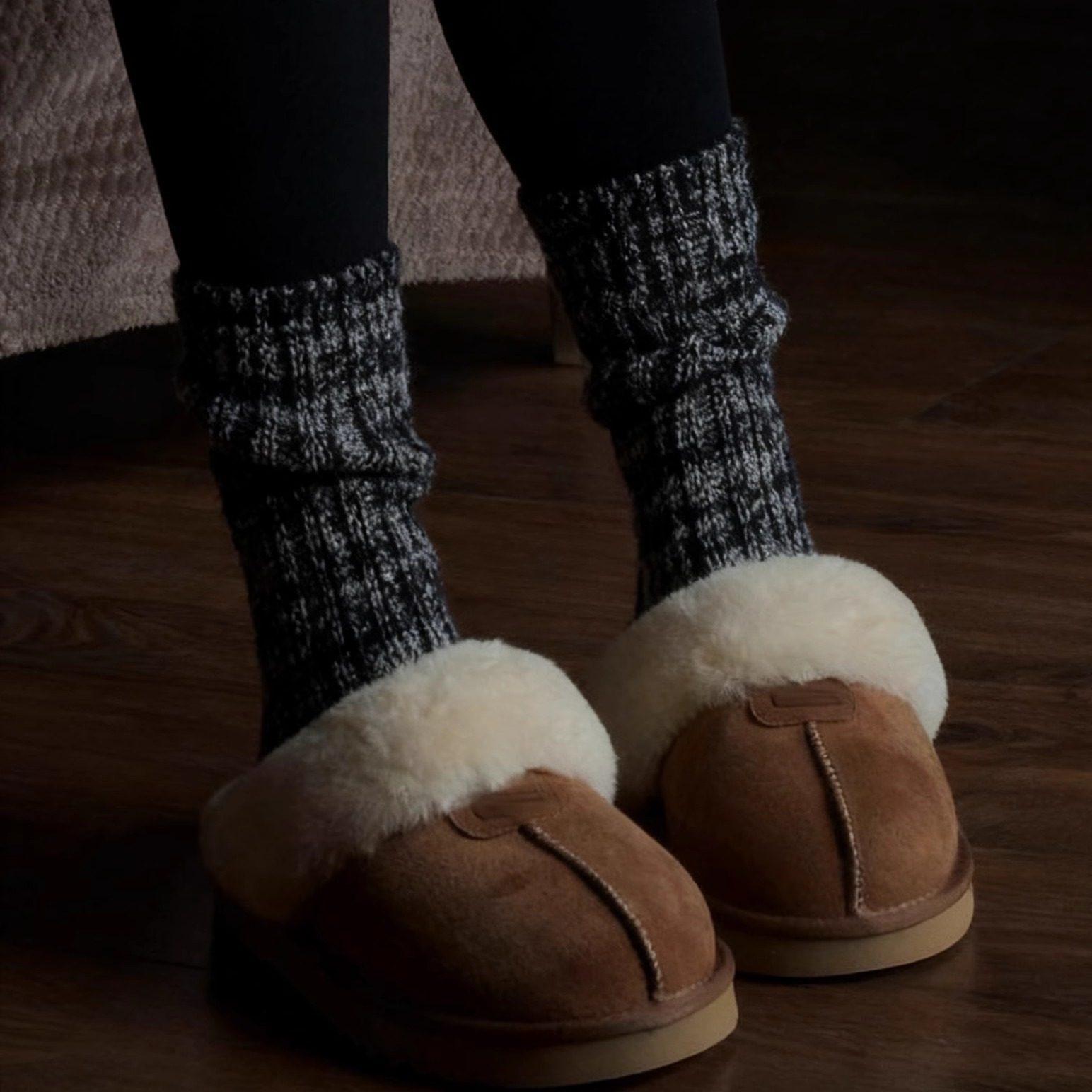 澳洲雪地靴袜子男女中筒纯色袜子秋冬保暖配鲨鱼裤 粗针棉线堆堆袜