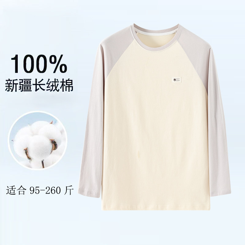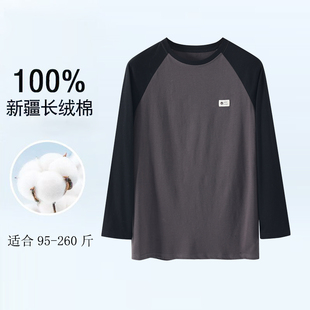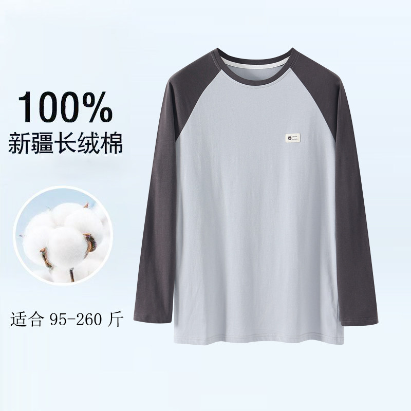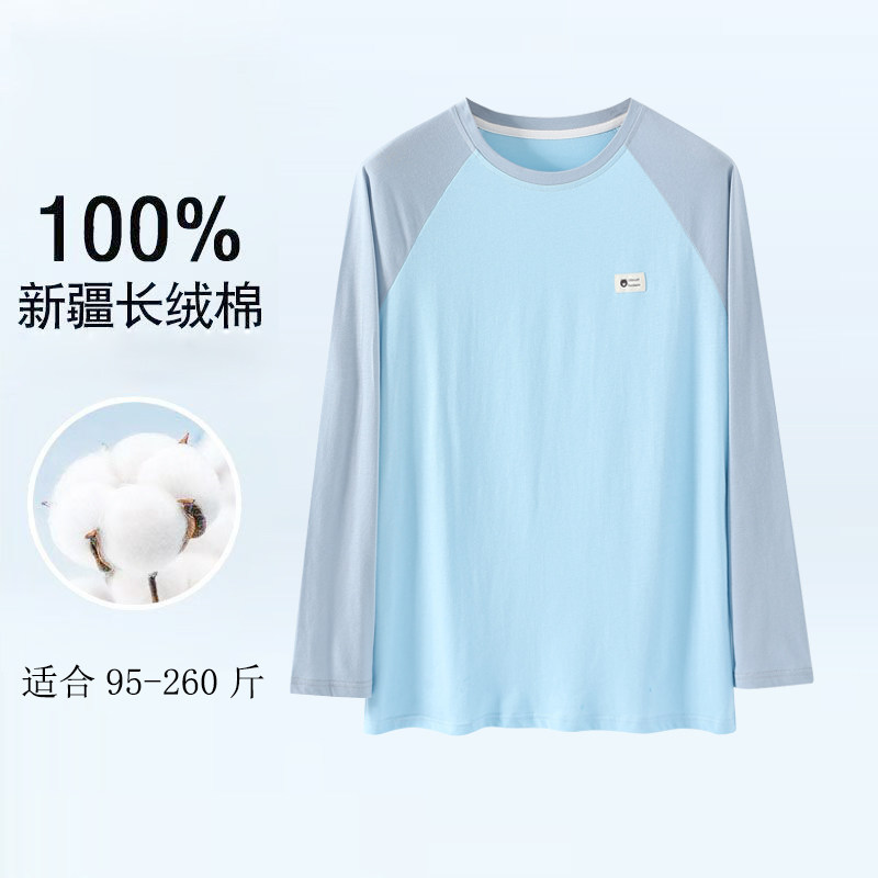 100%新疆棉男士 睡衣打底秋衣宽松加大加肥单件上衣运动休闲套头衫