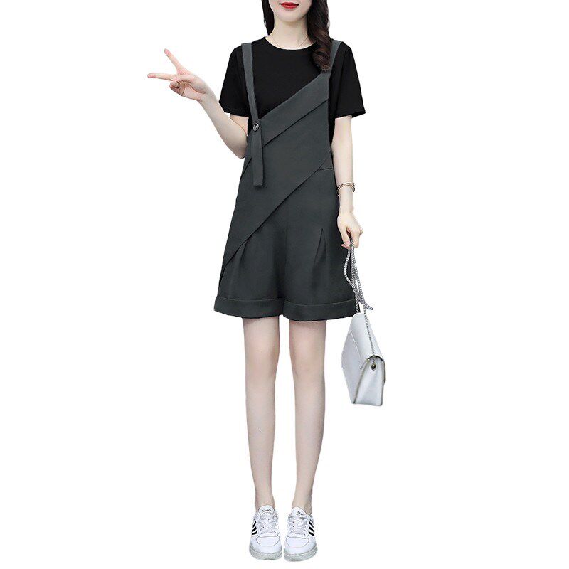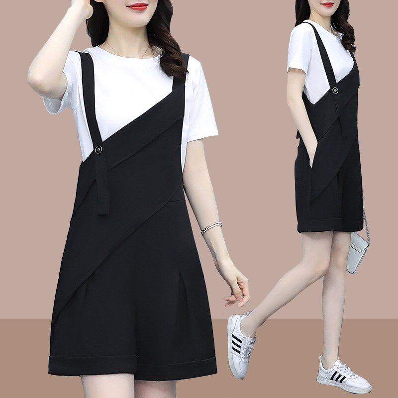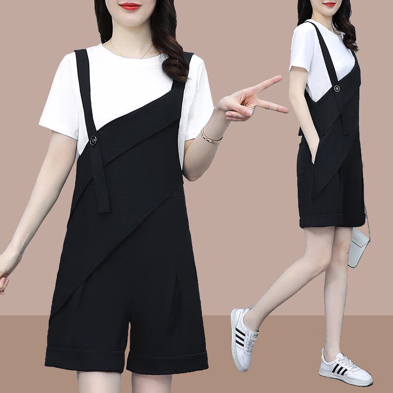 女装 洋气减龄显瘦遮肉背带短裤 2024夏季 胖妹妹时尚 两件套 新款 大码