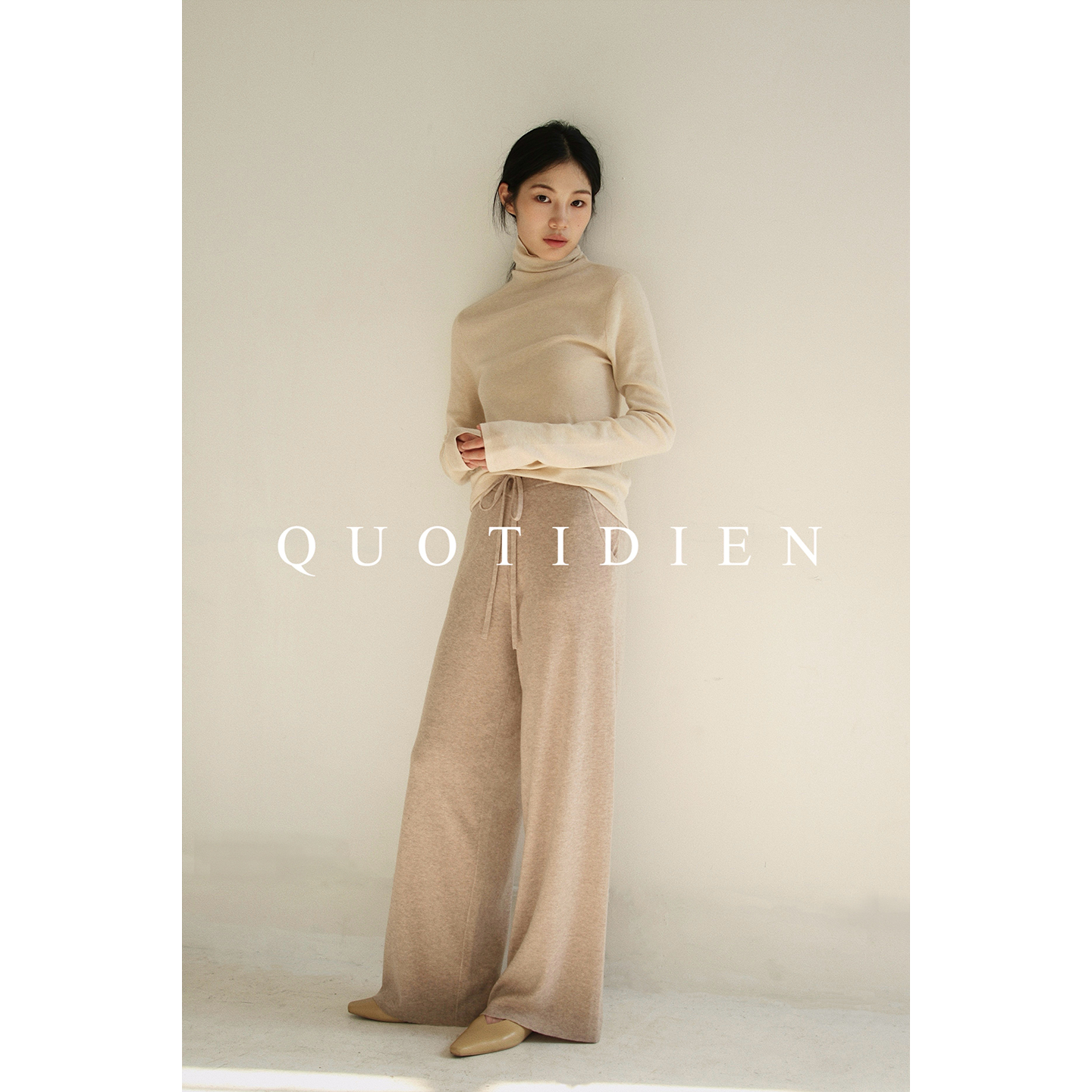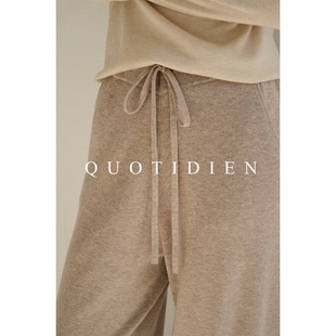 QUOTIDIEN 女士 可机洗真丝羊毛温柔休闲感软糯舒适抽绳针织阔腿裤