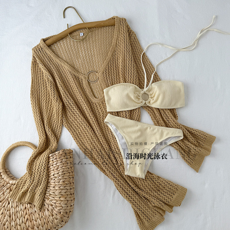 WESWIM泳衣海边度假三件套分体比基尼蕾丝性感纯欲气质仙气温泉白