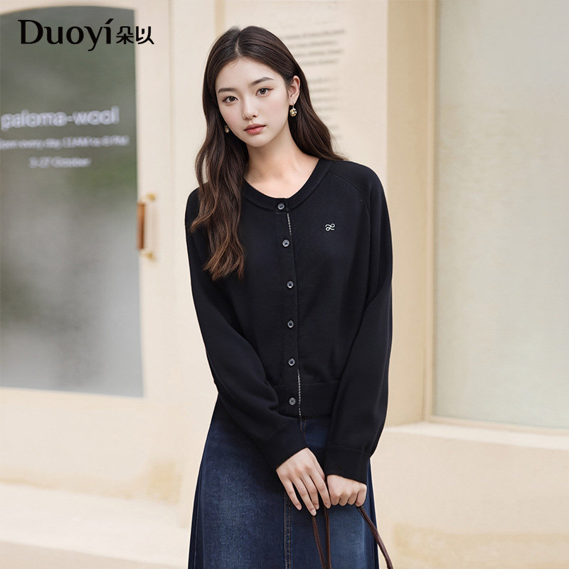 圆领毛衣针织开衫 简约纯色休闲松弛插肩袖 外套 新款 朵以2025秋季