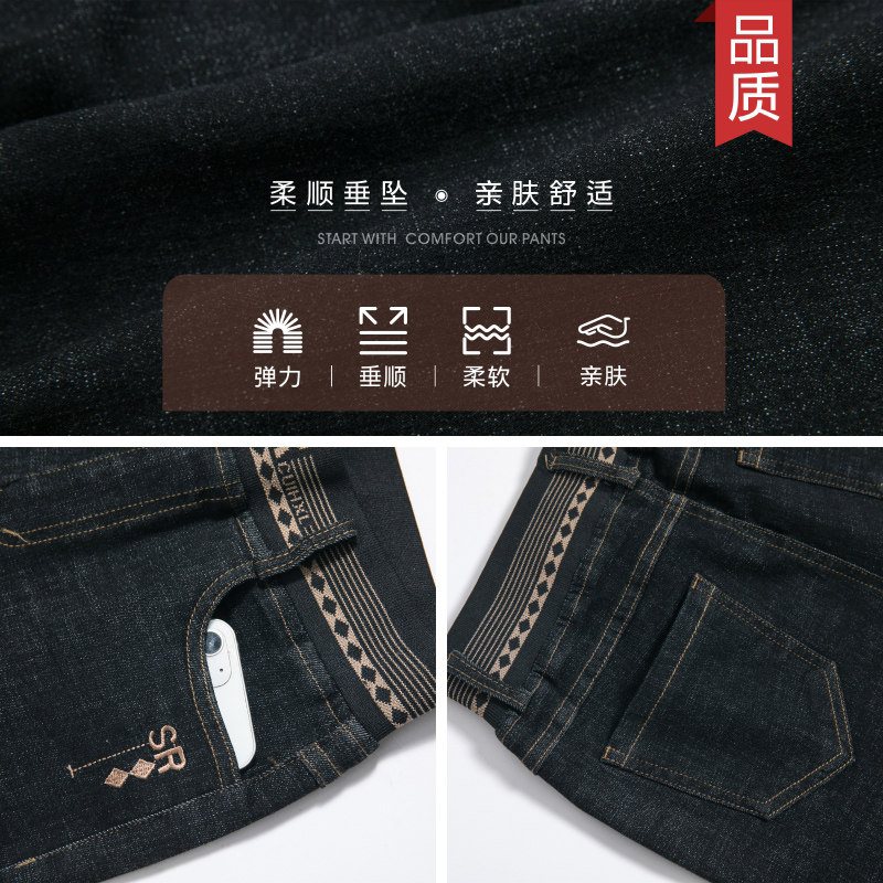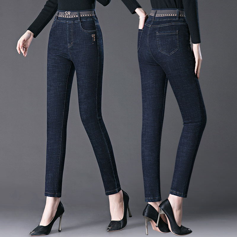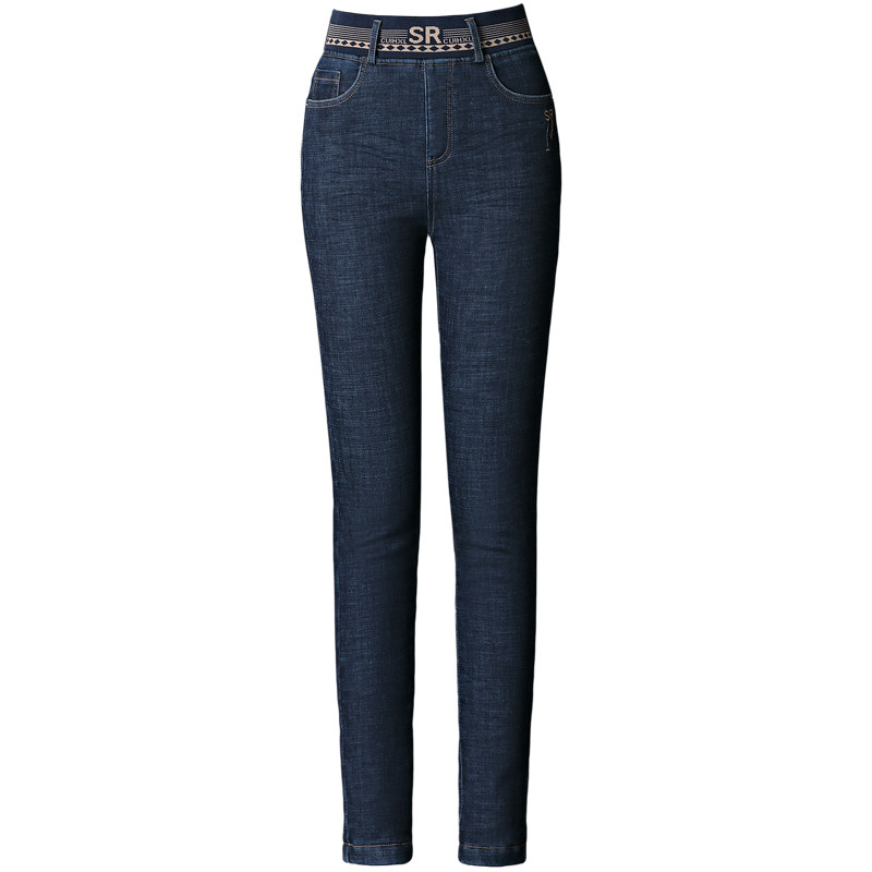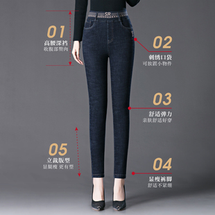 长裤 高腰弹力中年女士加绒显瘦女裤 子 女秋冬新款 松紧腰小脚牛仔裤