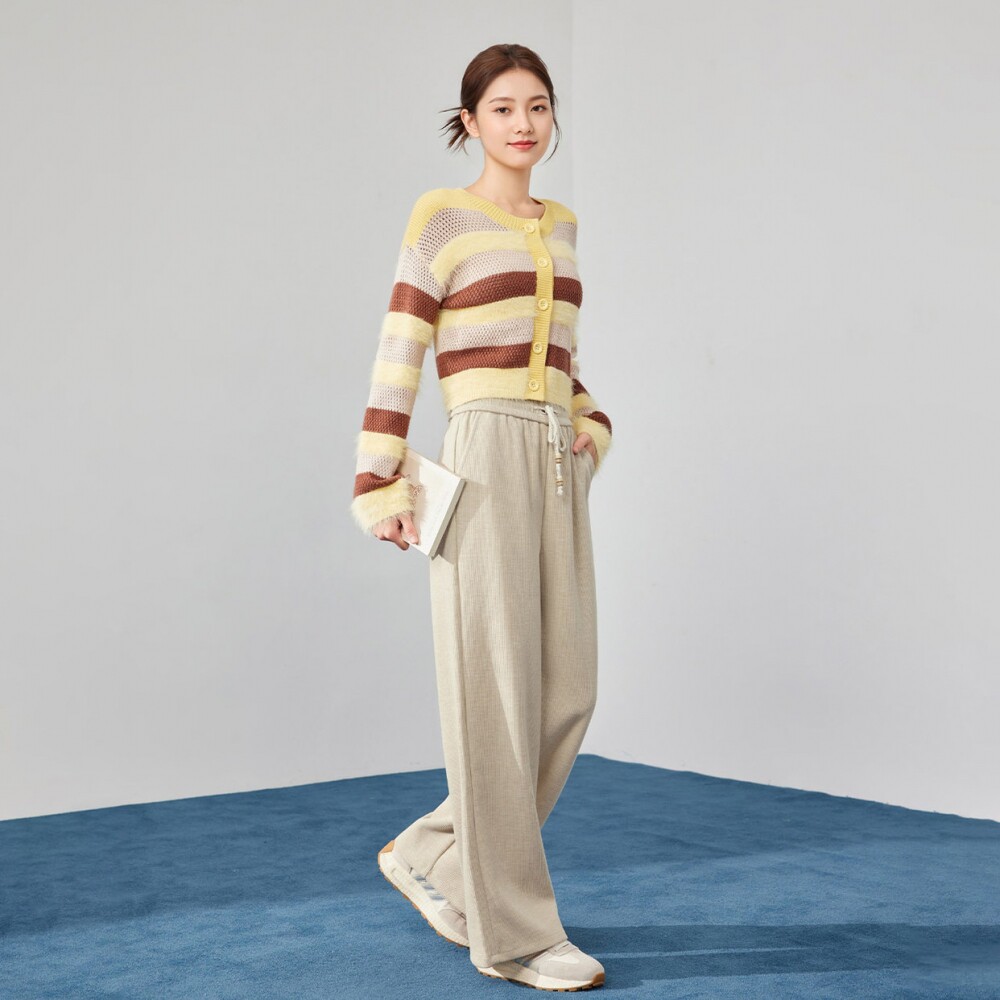 简约休闲慵懒风宽松百搭阔腿裤 IEF 韩版 子2025秋冬新款 爱依服裤