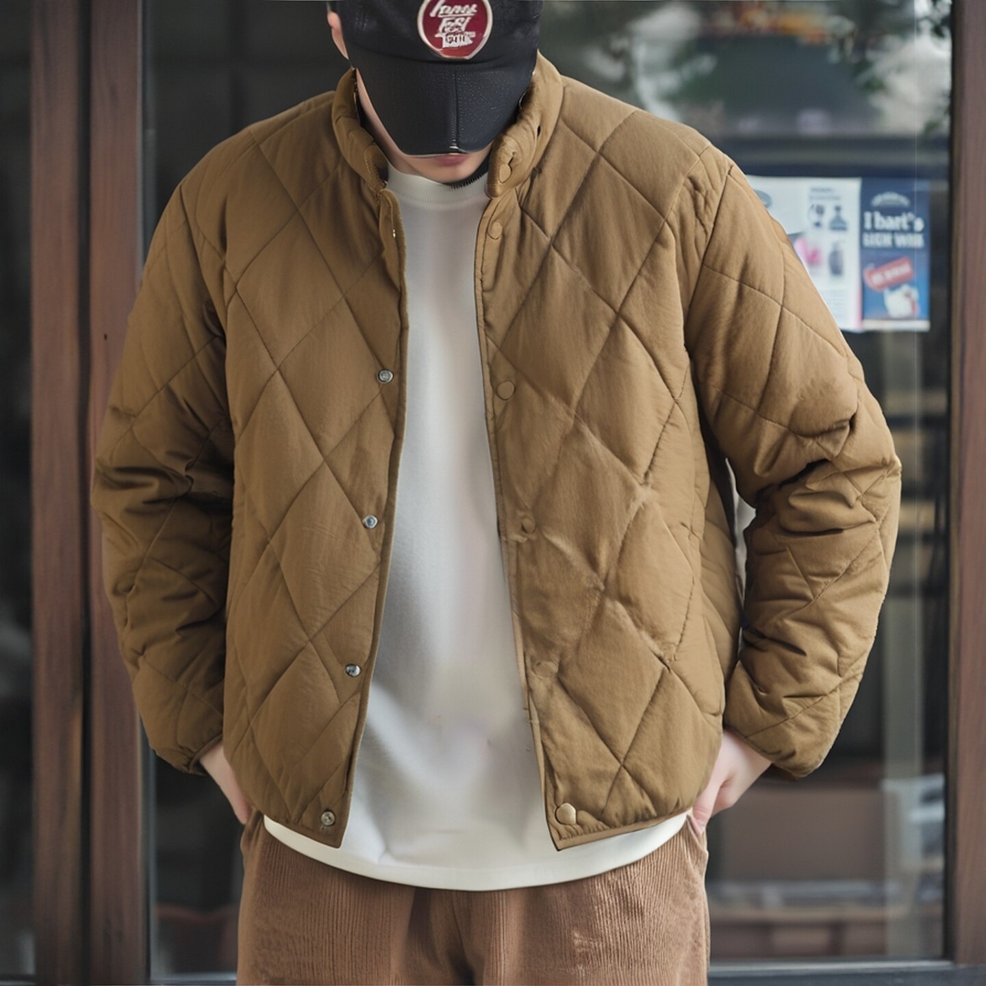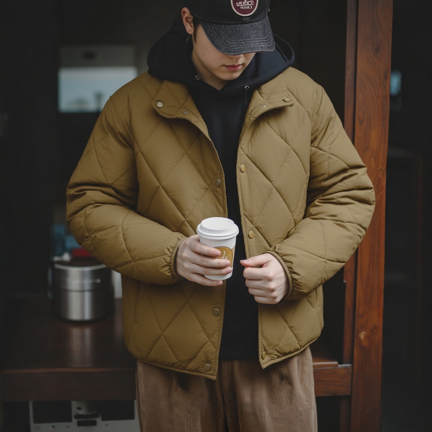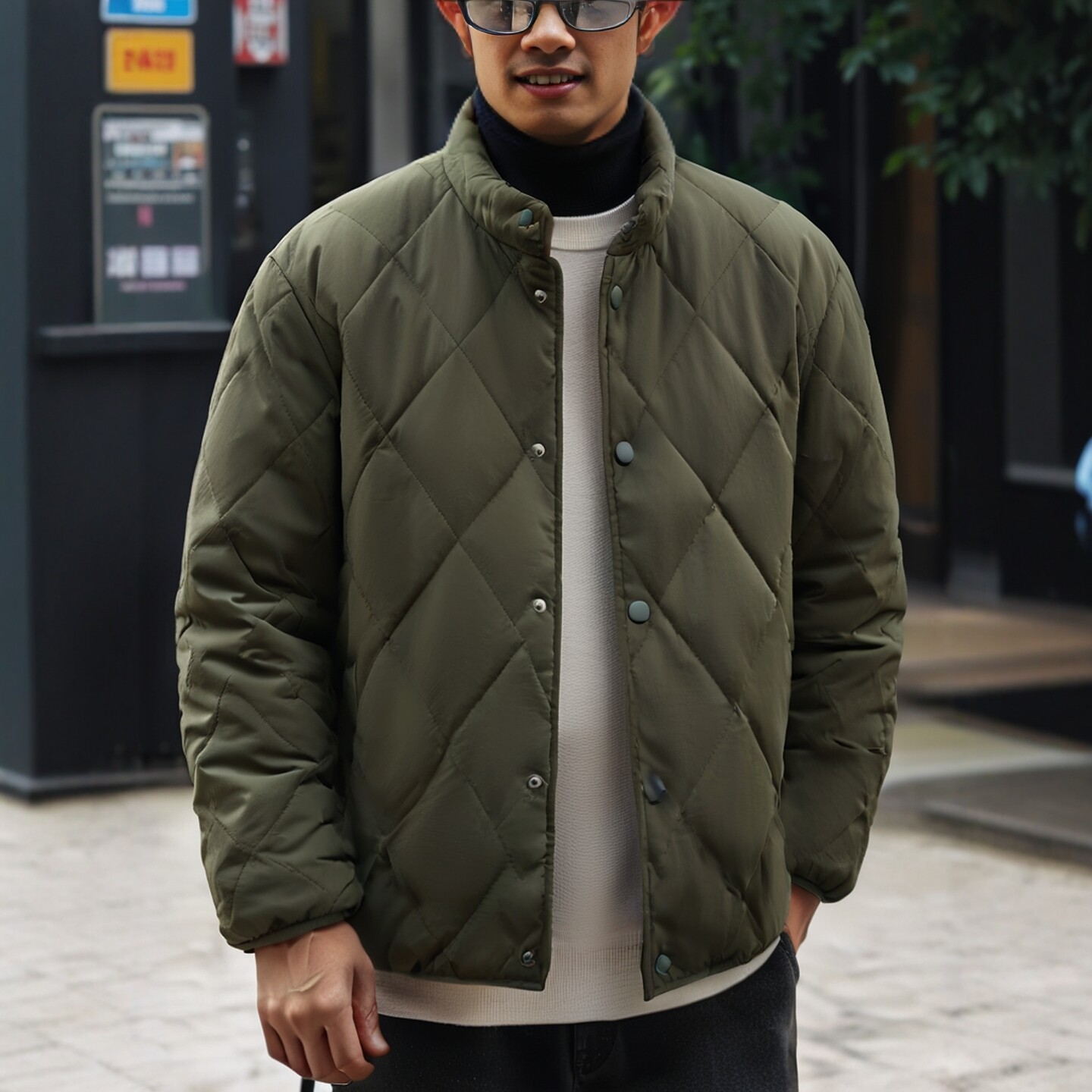 羊毛桑蚕丝菱形格棉袄外套男冬季 棉衣 轻薄立领棉服夹克外贸男装