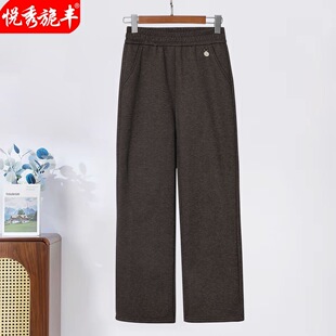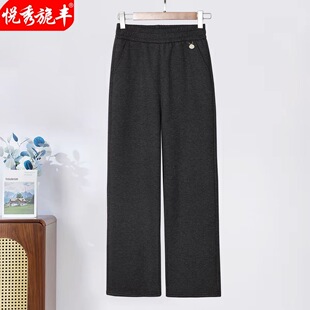 2026秋冬新女裤 高腰松紧加绒加厚中老年阔腿 妈妈直筒毛呢休闲长裤