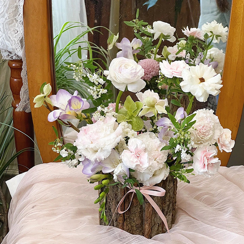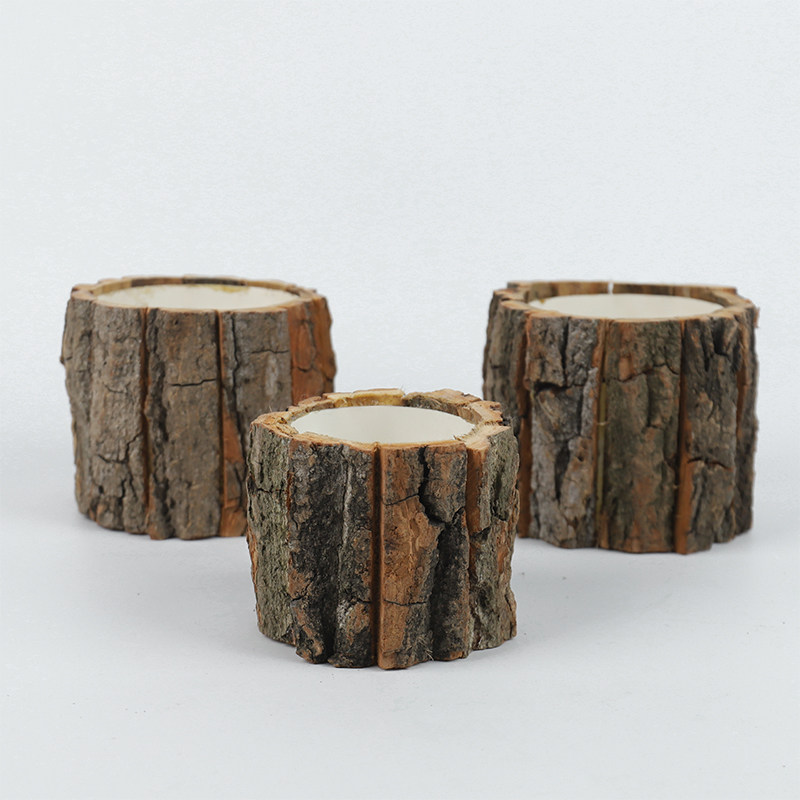 树皮花盆鲜花抱抱桶木桶插花干花礼物圣诞节花篮节日多肉木头花盆