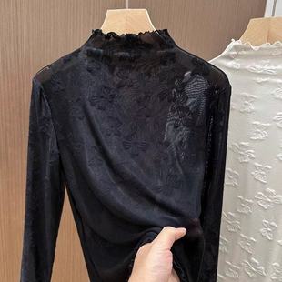 蕾丝提花木耳边半高领网纱上衣叠穿好看女内搭 气质淑女打底衫