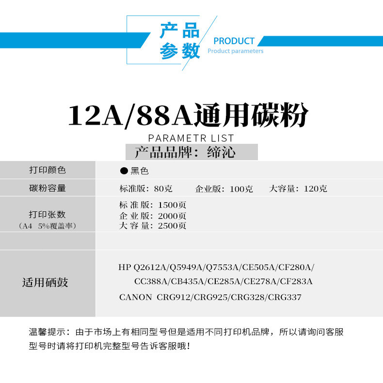 M1005mfp粉盒hp1022 1018 1010 1015 3020墨粉M1319f打印机碳粉Q2612A墨盒 1012 天色适惠普1020硒鼓1020plus