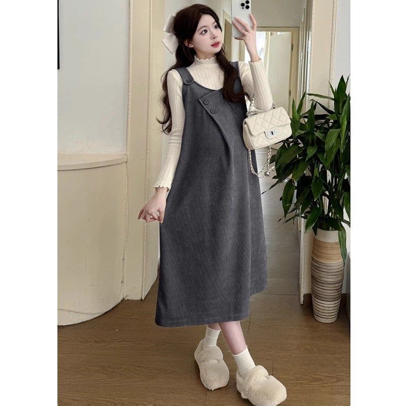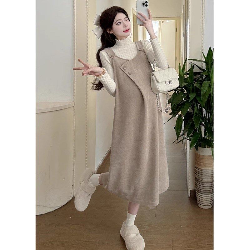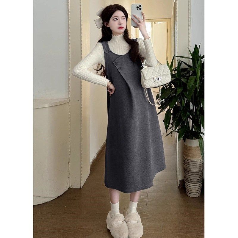两件套 高级感不规则宽松背带裙打底衫 孕妇连衣裙套装 秋冬2025新款