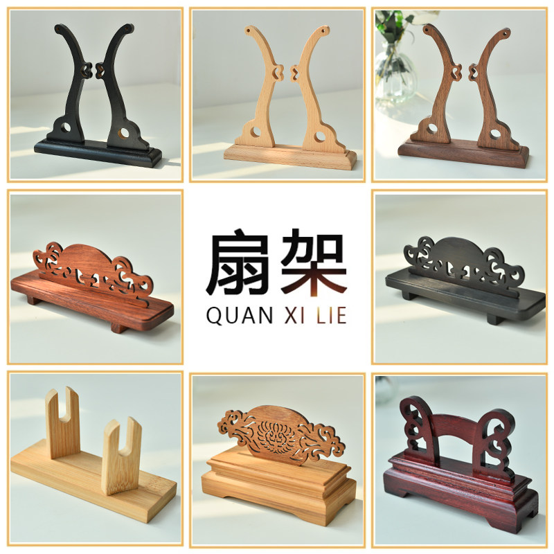 团扇折扇扇架子扇托扇座折扇宣纸扇扇架榉木黑檀木花