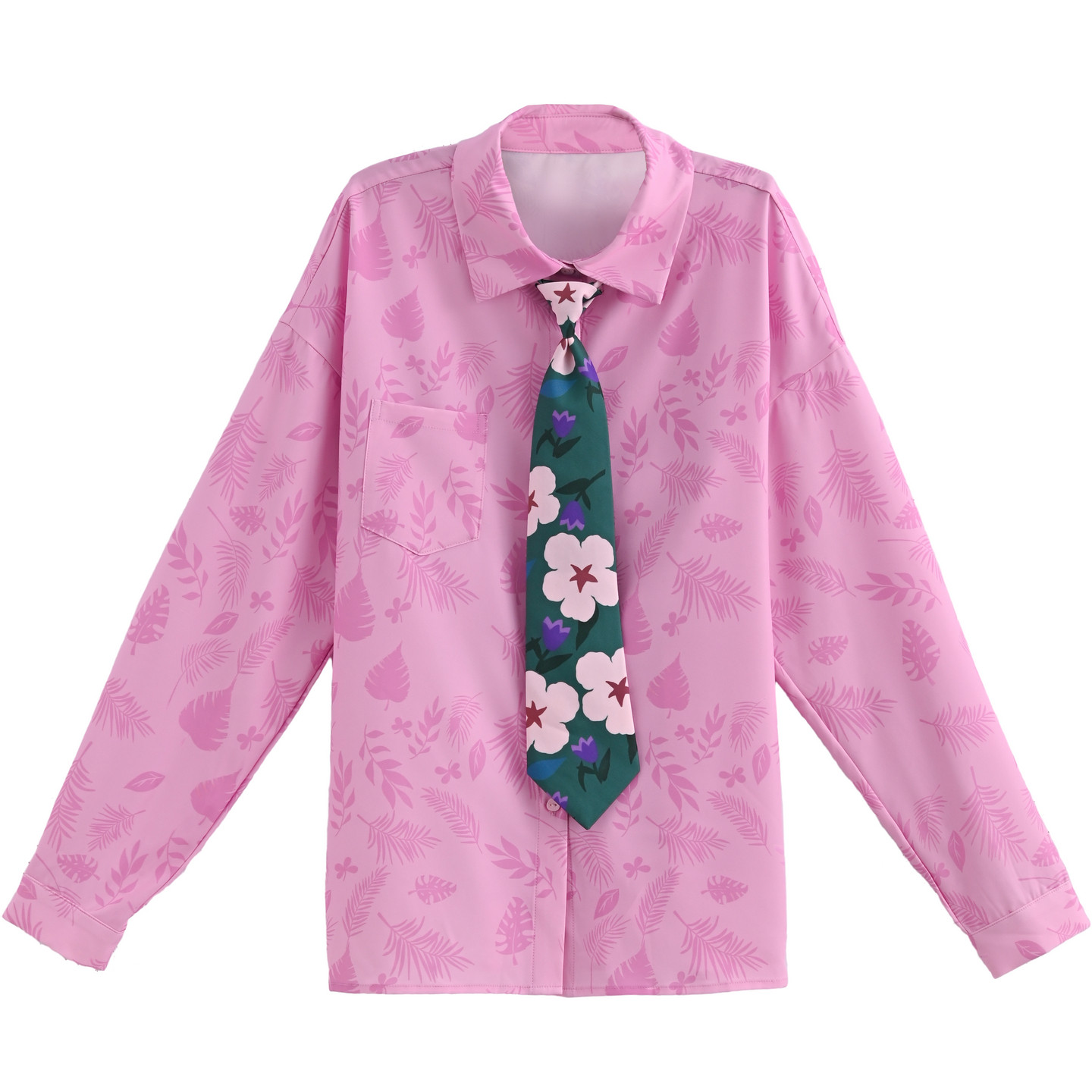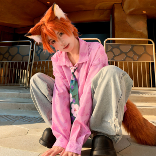 上衣冬季 宽松长袖 女2026新款 森女部落甜酷中性百搭翻领粉色花衬衫