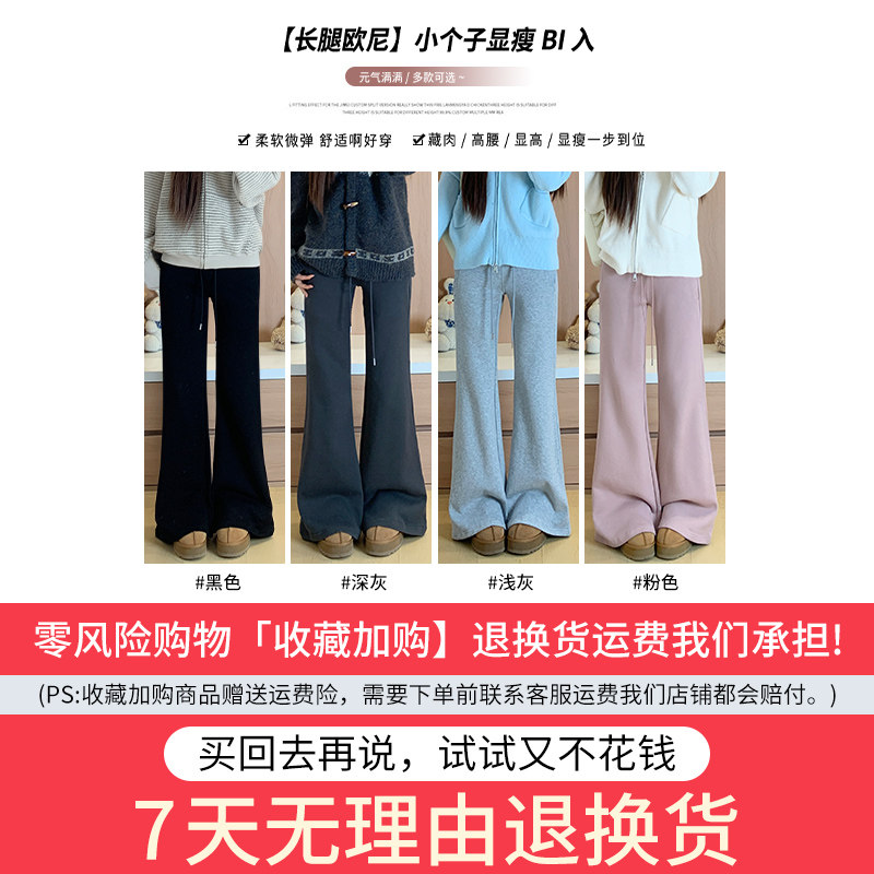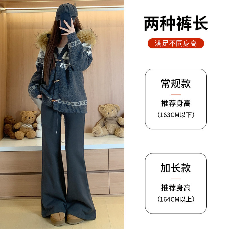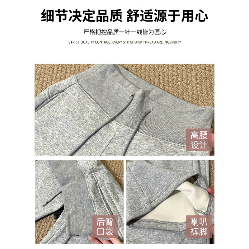 高腰显瘦宽松休闲喇叭裤 女秋冬加绒2025新款 微喇运动裤 深灰色美式