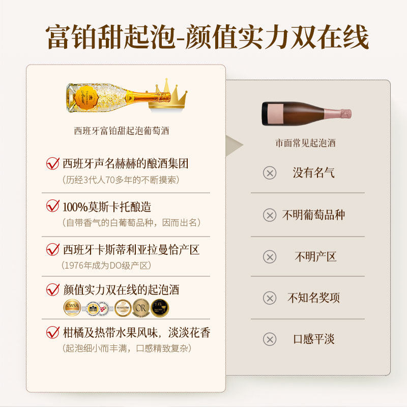西班牙原瓶进口起泡酒甜气泡酒莫斯卡托白葡萄酒赠香槟杯 自营