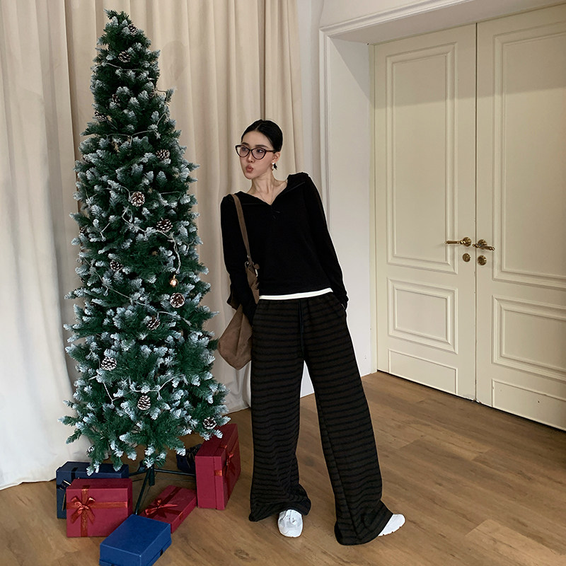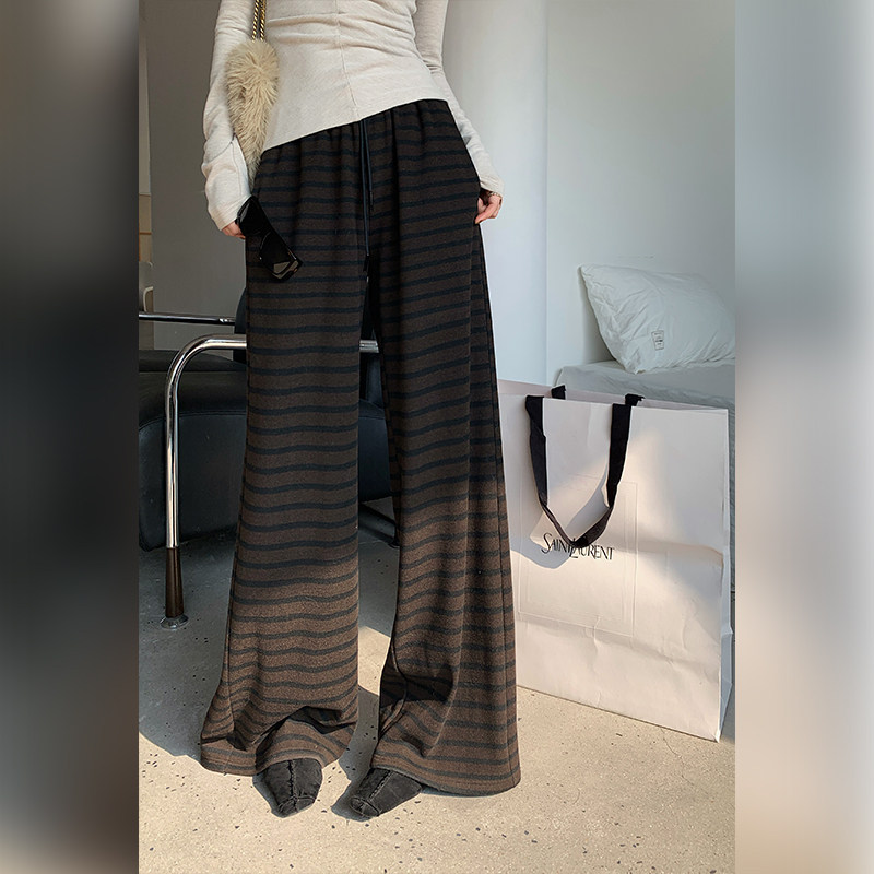 女冬宽松遮肉加厚保暖经典 慵懒休闲条纹长裤 百搭 冬日常客 十三粥