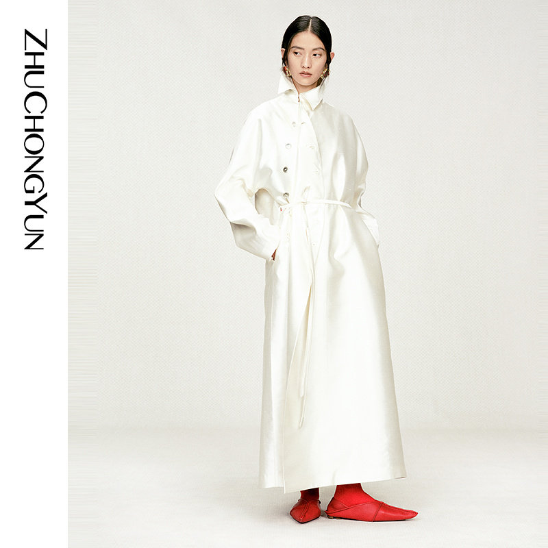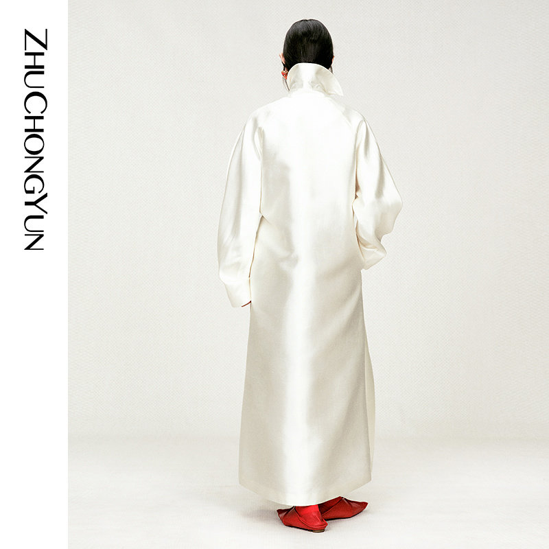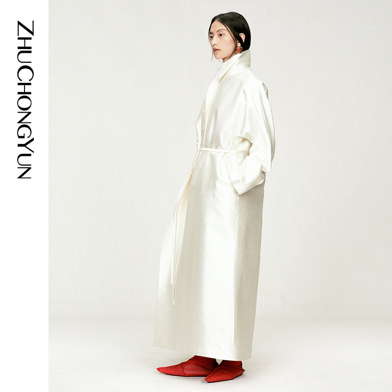 斜立领收腰廓形风衣 ZHUCHONGYUN2026春新款 真丝缎面