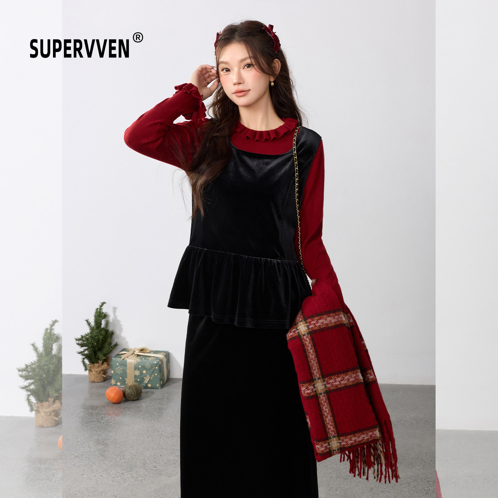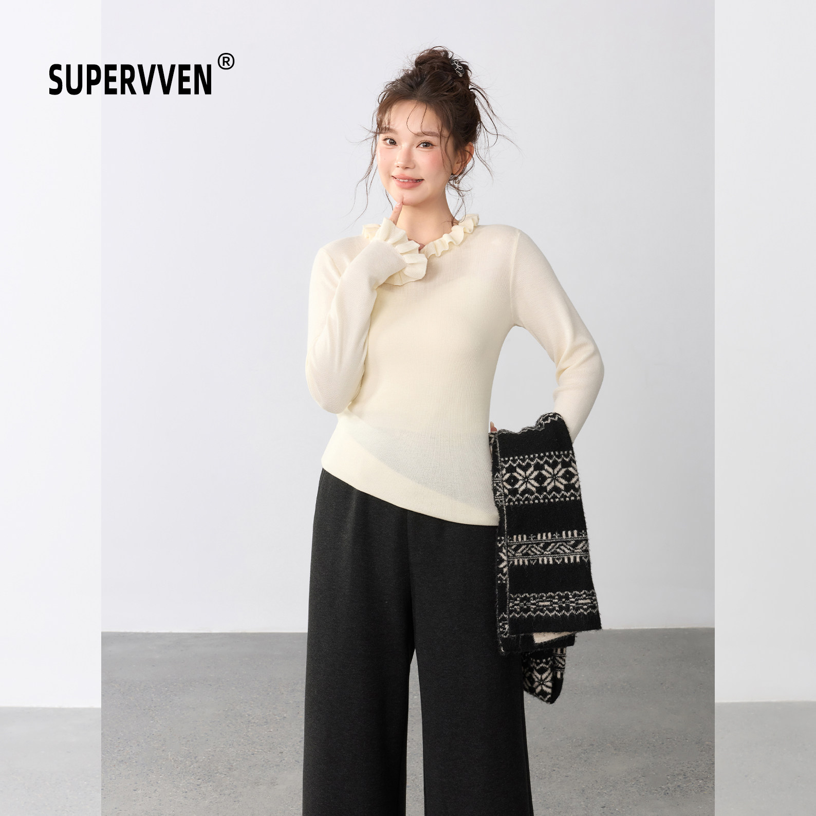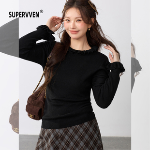 女微胖大码 超级文 显瘦叠穿羊毛针织衫 金芭蕾风木耳边修身 笼巧装