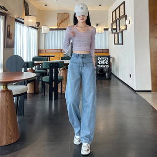 子 女2025新秋垂感宽松慵懒拖地裤 梨型神裤 立体侧骨阔腿牛仔裤