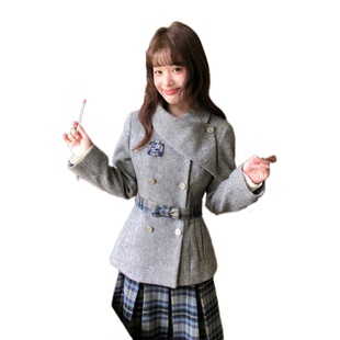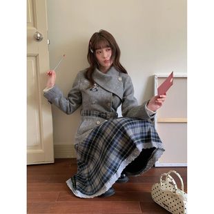 黯蓝织 小众毛呢外套裙子两件套学院风甜美呢子大衣女 2025冬新款