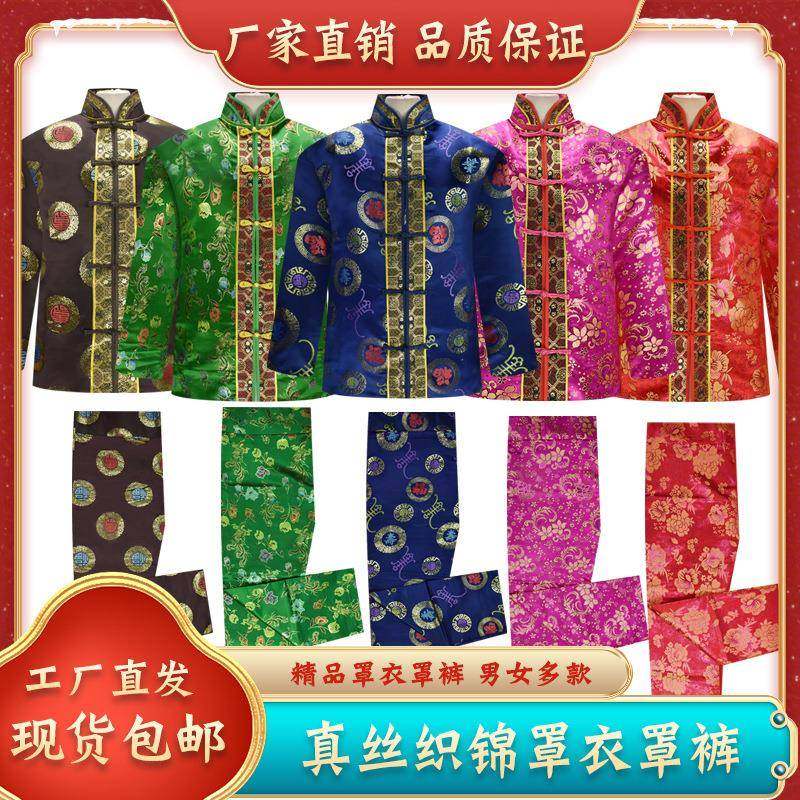 真丝品织锦寿衣罩衣罩裤 厂家衣包包裤 葬用337老人白事老衣殡唐装