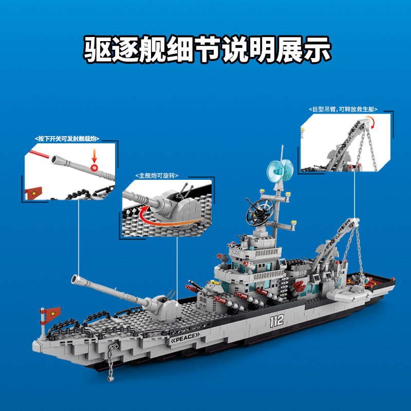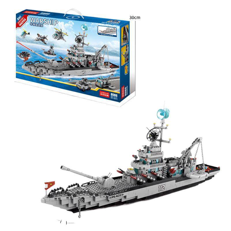 积木玩具兼容男孩拼装 航空母舰儿童驱逐舰航母模型普通塑料积木