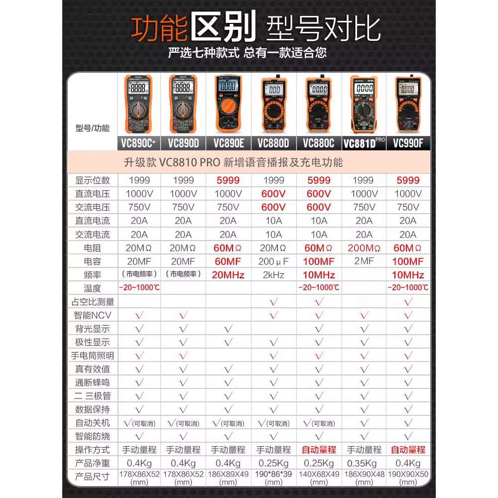 胜利万用表数字高精度全自动智能VC890C D多功能维修电工多用电表