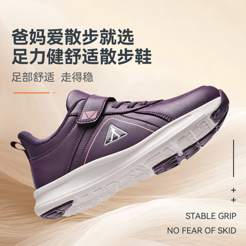 春季 中老年鞋 妈妈鞋 户外休闲运动鞋 子 皮面散步鞋 足力健防滑老人鞋