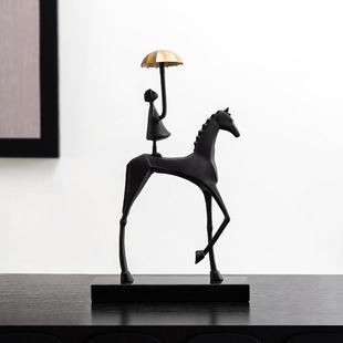 创意铸铁金属马摆件家居客厅轻奢高档装 饰品电视柜酒柜高级感摆件