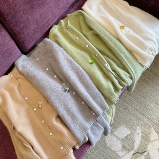 女百搭毛衣外套 针织开衫 KXLFCHN空穴来风 秋冬牛角扣兔子绣花长袖