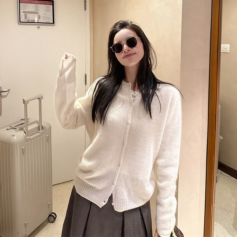 女 加厚针织衫 冬季 毛衣女水貂绒保暖简约白色加绒毛线衣软糯打底衫